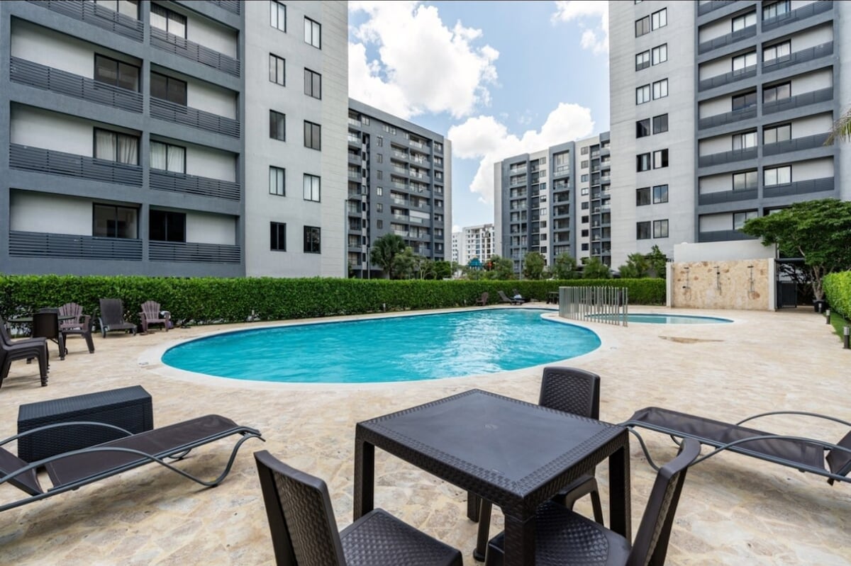 disfruten de este residencial con la familia donde disfrutaran seguridad 24/7 patio de juegos para ninos cancha de futbol.Gym parqueo gratis de carro, inversor piscina.este apartanmento de 2 cuartos tienes 2 banos internet rápido aire acondicionado 3 televisiones 50' 40 y 32 pulgadas 1 cama queen y 2 twins. lavadora de ropas con secadora agua caliente, caja fuerte 2 elevadores balcon mesa para trabajar de casa. bicicleta estacionaria.