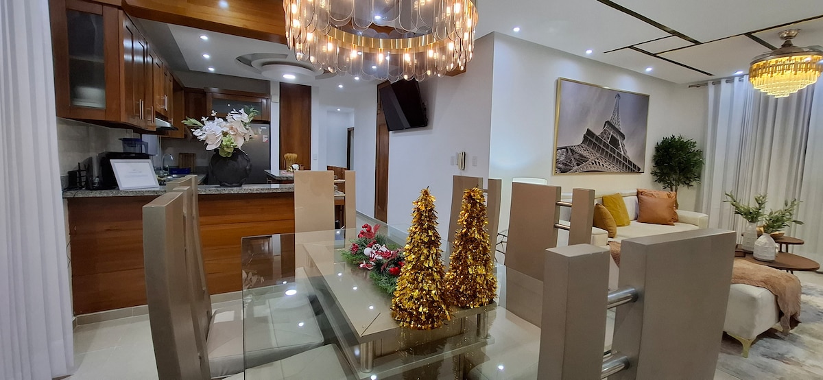 Relax with the whole family at this peaceful place to stay. Its a residential complex were you can feel safe because of the well trained security staff, gated community. The apartment is fully equipped with all essential including elevator . The clubhouse has beautiful landscape with pool, gym area, pool table and clubhouse.