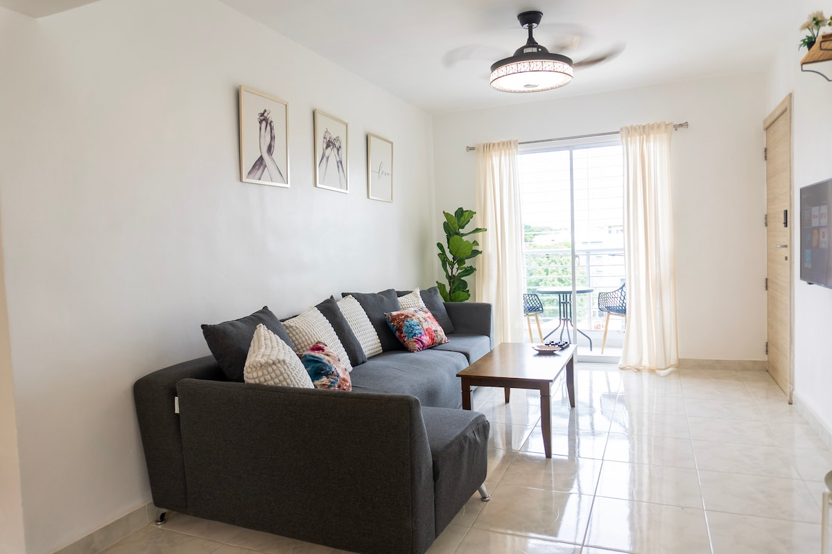 Nuevo y moderno apt, espacio cómodo y bien iluminado Cocina bien equipada y un baño limpio y espacioso, Parqueo privado y seguro con seguridad 24/7. , localizado a 10 min del Aeropuerto, centro de ciudad ect perfecto para disfrutar de un espacio comodo y tranquilo con toda su familia equipado con 3 dormitorios con tv wifi y aire acondicionado, Tenemos salon de eventos privados, piscina, villar, gimnasio, area de BBQ, area de juego para niños, cancha de basketball, wifi.