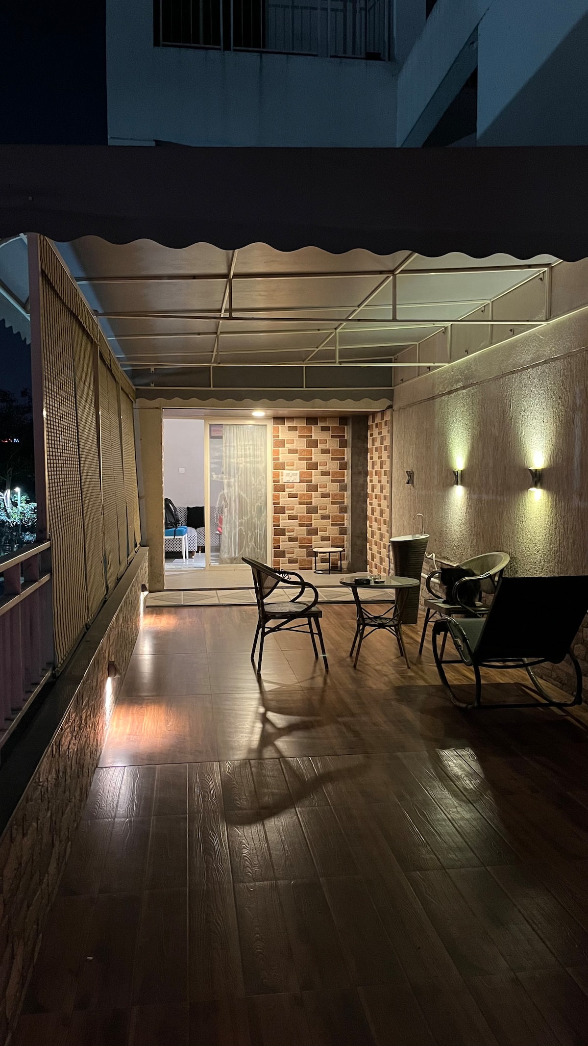 Independent duplex apartment with complementary breakfast and a beautiful patio. Airport: 3kms Phoenix Mall: 2.5kms Irani Cafe: 400mtrs & many eateries. Koregoan Park: 4kms Viman Nagar: 3Kms Breakfast Of Your Choice ✅ (breakfast not included in long stay discounts) Inverter Backup ✅ Fully Functional Kitchen (Refrigerator, Microwave, Water Purifier, Induction HotPlate Crockery, Laundry) ✅ Free Internet ✅ Washing Machine & Ironing ✅ Smart TV ✅ Small Balcony ✅ Caretaker ✅