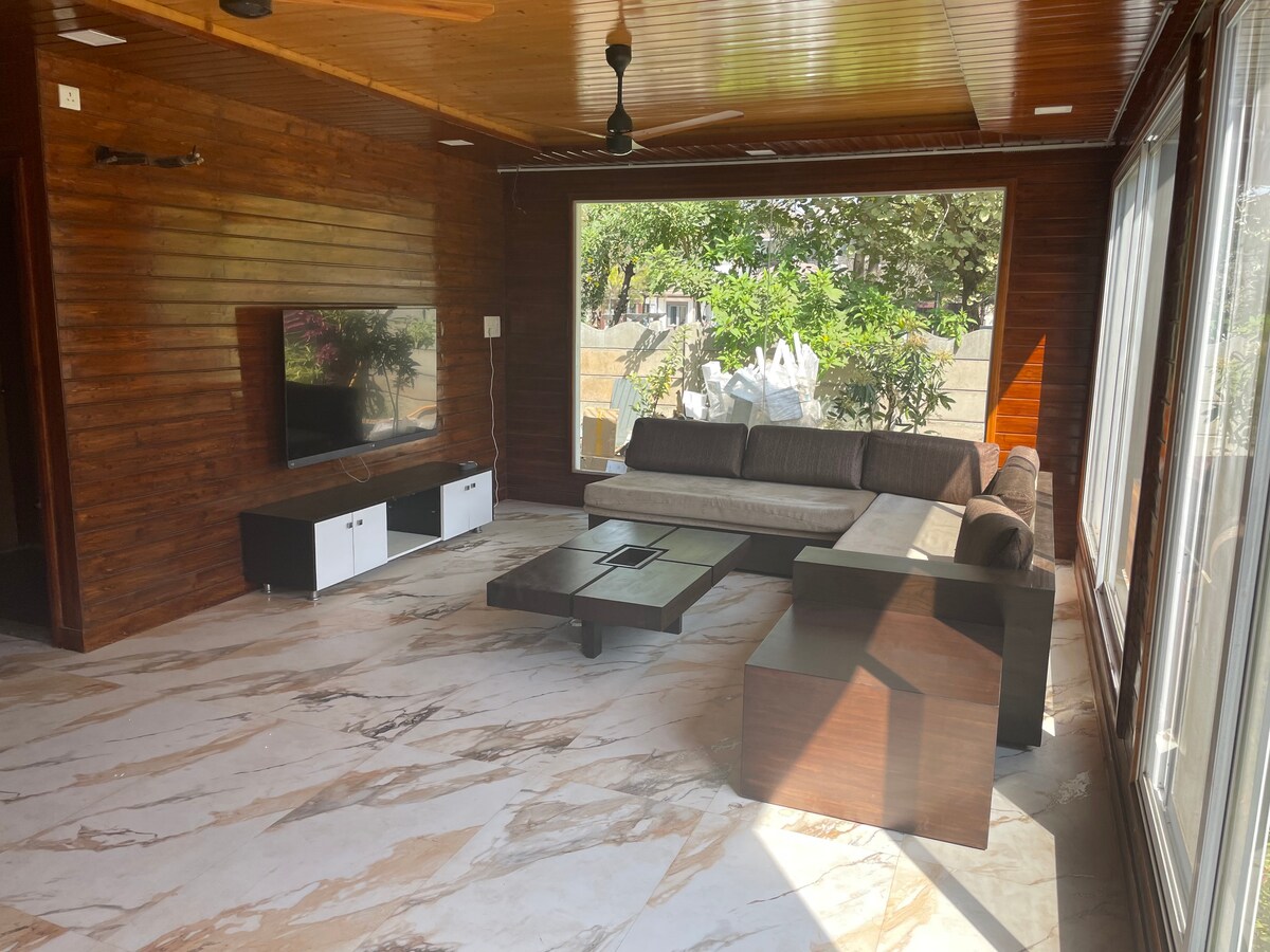This is a lavish, stunning three bedroom apartment with a large private garden and private patio space, located in Koregaon Park. It is carefully designed to meet the needs of every guest. It has a huge living area with comfortable couches and a dining table. The master bedroom has a King size bed while the other two bedrooms have queen size beds. All rooms are air-conditioned, have a TV, closet, study table and a clean bathroom. **NO UNMARRIED COUPLES ALLOWED**