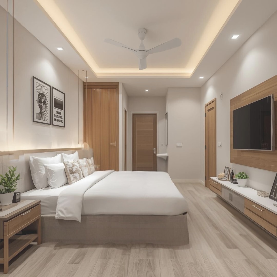 Unwind in this spacious king room with modern interiors, plush bedding, and a calm vibe—perfect for work or leisure. Located in the heart of Kharadi, Pune.