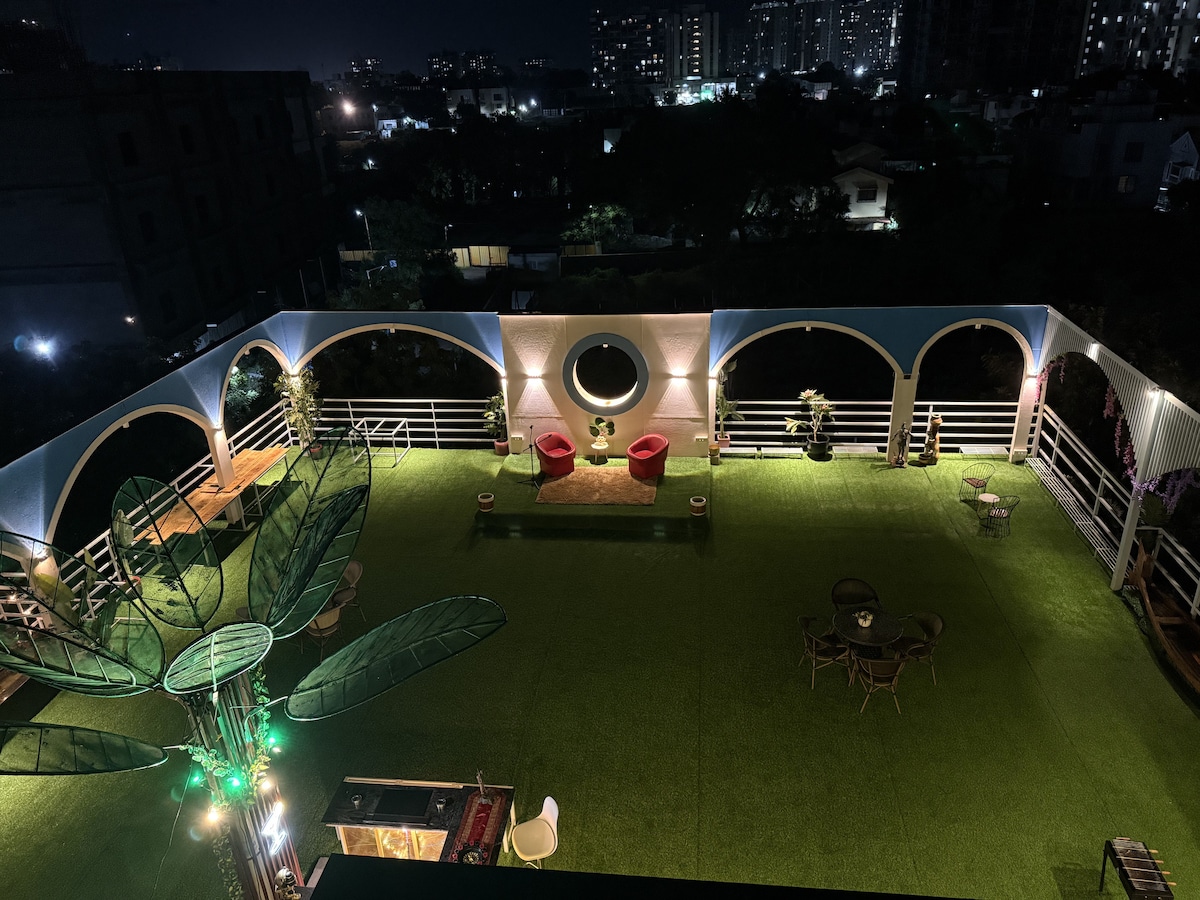 Book your stay to awaken to Breathtaking Panoramic City views from this stunning Glass House. Escape the hustle and bustle of everyday life in our charming 2BHK bungalow on the 1st Floor(climb stairs). 10 mins to the airport, 12 mins to the metro station, 12 mins to the Novotel & Ritz-Carlton. Food delivery in 10mins using services like Blinkit & Zomato from famous cafes in Pune. Friendly for all including couples, Bachelors & Families. Free Wifi, Ample Parking, Relax at the Front Porch Garden.