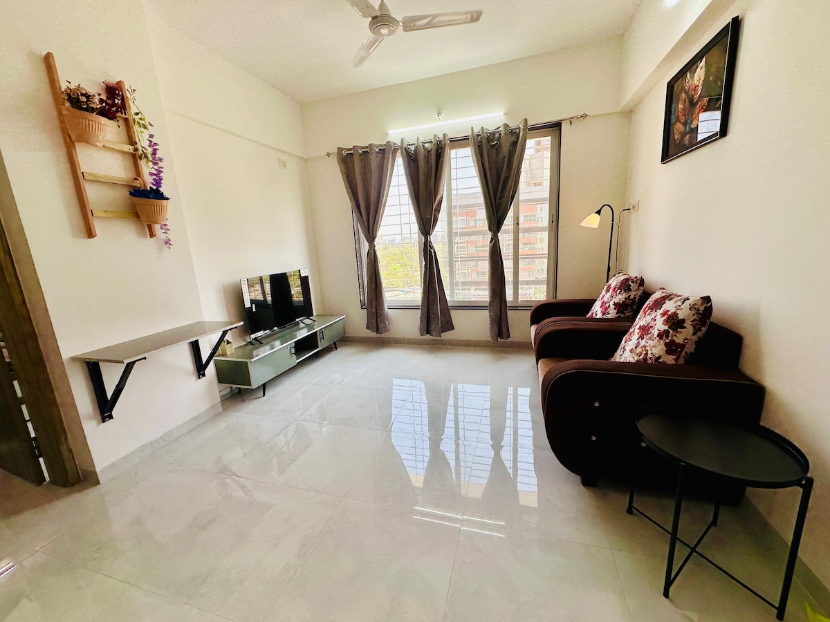 Welcome to our charming 1 BHK cozy and peaceful flat perfect for a comfortable stay in the heart of the city! This delightful retreat is fully equipped to meet all your needs, whether you're here for a short getaway or a longer stay Note: The clubhouse remains closed every Tuesday as part of its weekly schedule.