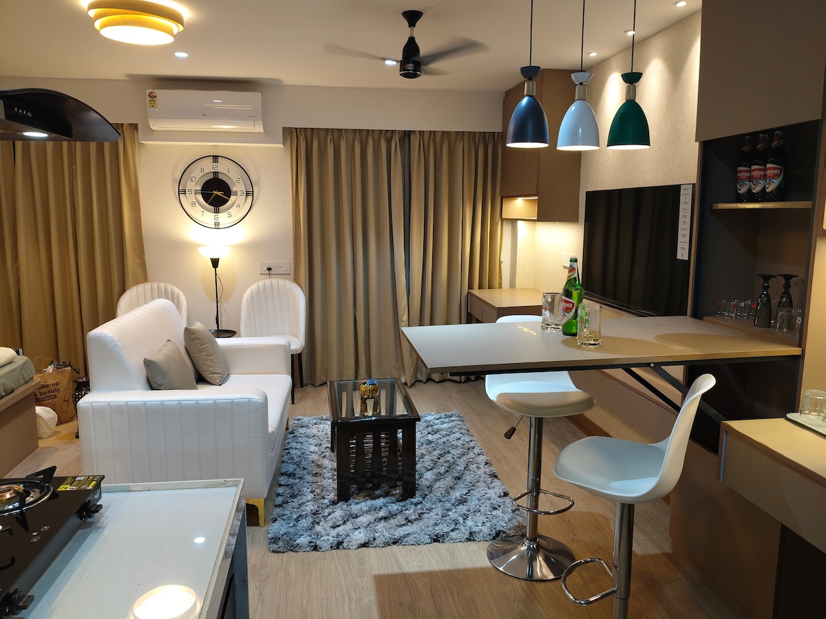Welcome to the clouds ☁️ This is The WiFi Loft, a cozy-yet-luxurious 20th-floor 2 BHK where the WiFi is strong, the views are stronger, and the vibes are always good. Wake up to a gorgeous lake view, sip your chai/coffee on the breezy balcony, and end your day watching the city lights from above. Whether you’re here to work, chill, celebrate, or do all three—this place has your back 😌 This unique place has a style all its own.