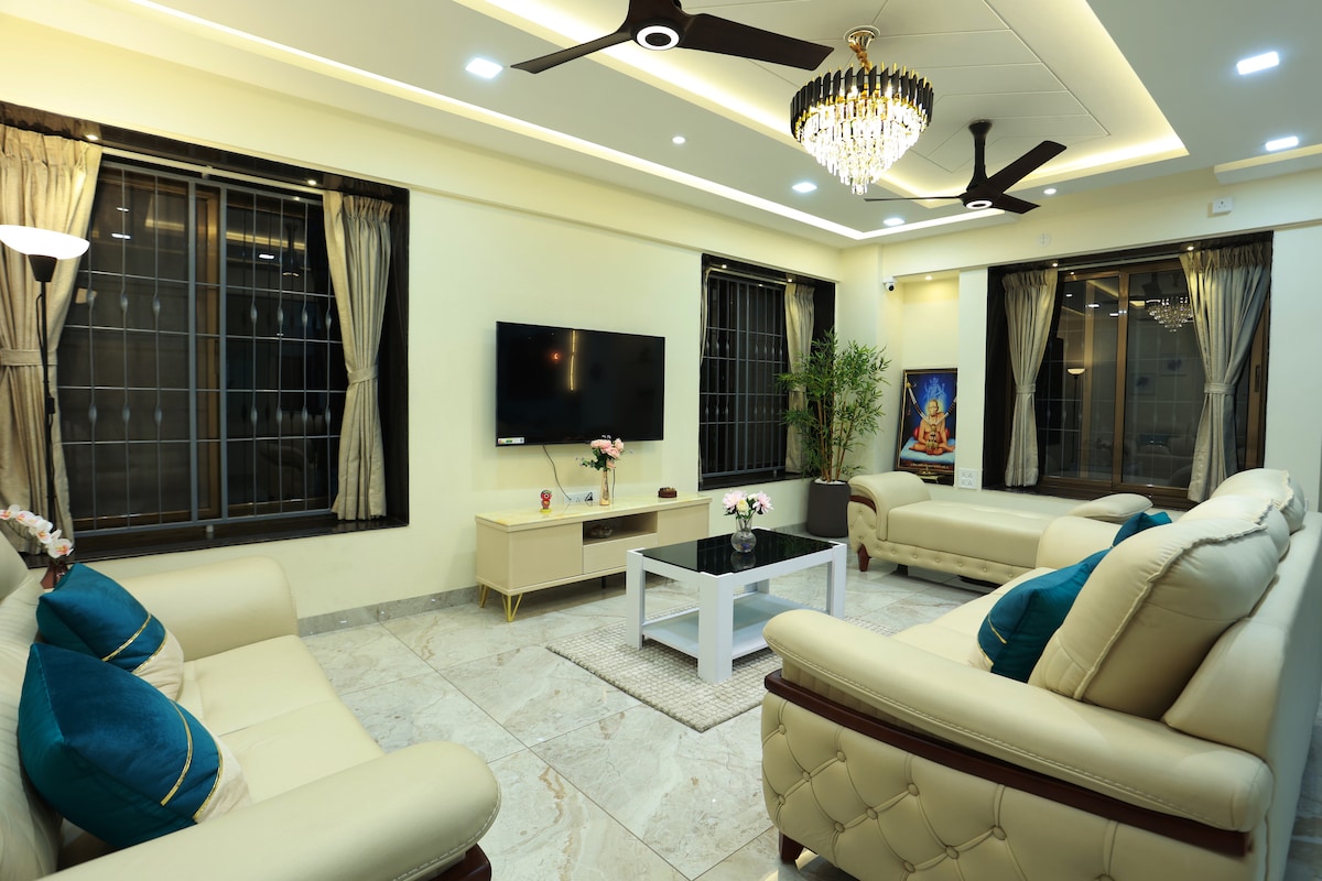 Presenting a beautiful 5 BHK bungalow in the prime locality of Baner, featuring 3 Living Rooms, Fully Equiped Kitchen, 5 Spacious Air-Conditioned Bedrooms, 2 Balconies, A Lovely Terrace - Perfect for relaxing with your friends and family. We ensure a comfortable stay with top-notch hygiene and cleanliness, upheld by our Host commitment and inspired by the ethos of “Atithi Devo Bhava.”