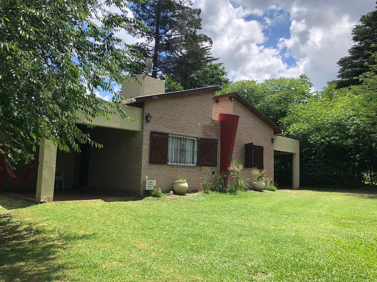 Cabaña Alpina rodeada de naturaleza, un espacio ideal que invita a descansar y desconectarnos. Ubicada a cuatro cuadras de la Ruta N°38, a quince minutos caminando del centro comercial de la localidad de Villa Giardino y a un kilometro del río, ideal para caminatas y paseos.