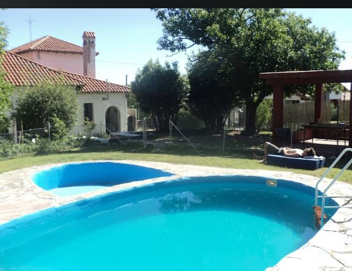 Enorme parque de 2000m2 con pileta ,juegos para niños y cancha de tenis,zona residencial,muy tranquila y proxima al centro y a la (URL HIDDEN) propiedad tiene 220m2 cubiertos,es un gran salon tipo loft,con asador incluido,porton para ingreso de 2 vehiculos(dentro del mismo),mesa de pool,anafe(no hay horno) si microondas,heladera,Tv por cable(en el salon)y Wi-fi .Tiene 2 dormitorios:uno con 2 camas individuales apareadas y un sofa cama y el otro con 4 camas individuales.