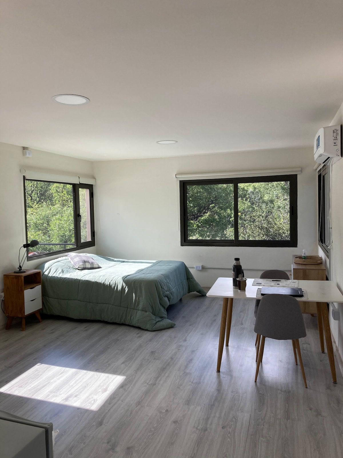 Ubicado en la base del imponente Cerro Uritorco, este moderno departamento ofrece una vista espectacular al Uritorco y al Cerro Las Gemelas. Con acceso privado, cochera, aire acondicionado, cocina equipada, baño completo y wifi, garantiza comodidad y privacidad. Disfruta de una terraza ideal para relajarte y admirar el paisaje. Un refugio perfecto para descansar, conectar con la naturaleza y vivir una experiencia inolvidable en Capilla del Monte. ¡Reserva ahora! 🌿🏡✨