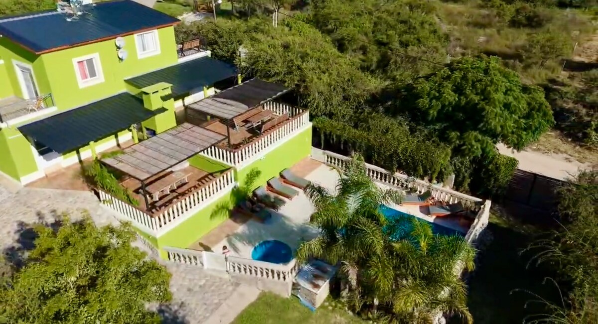 Creá recuerdos inolvidables en este alojamiento único e ideal para familias. Un espacio donde encontrarás conexion con la naturaleza, amanecer con el canto de los pájaros, vista panorámica a las sierras y un riquísimo desayuno. Cerca de los principales atractivos turísticos de la zona, a muy pocas cuadras del casco céntrico. Los niños cuentan con juegos de plaza y amplio parque para disfrutar. Pileta de natación con cascada. Hidromasaje exterior. Servicio de lavandería. Almuerzos y cenas.
