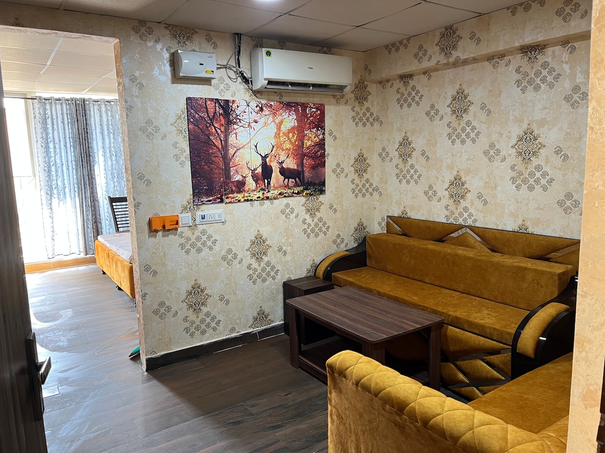 Welcome to your home away from home ! Whether you’re visiting for work or leisure, this bright and stylish space is perfect for couples or solo travellers , families . 🛏 What You’ll Get: • 1 bedroom with comfortable bed & living room • 1 bathroom with hot water & basic toiletries • Fully equipped kitchen for home-cooked meals • High-speed 🛜 , smart TV ,Refrigerator 🚗 Other Highlights: • Parking / 24x7 Security / Self-check-in / Elevator / Pet-friendly • 24x7 💡 Backup