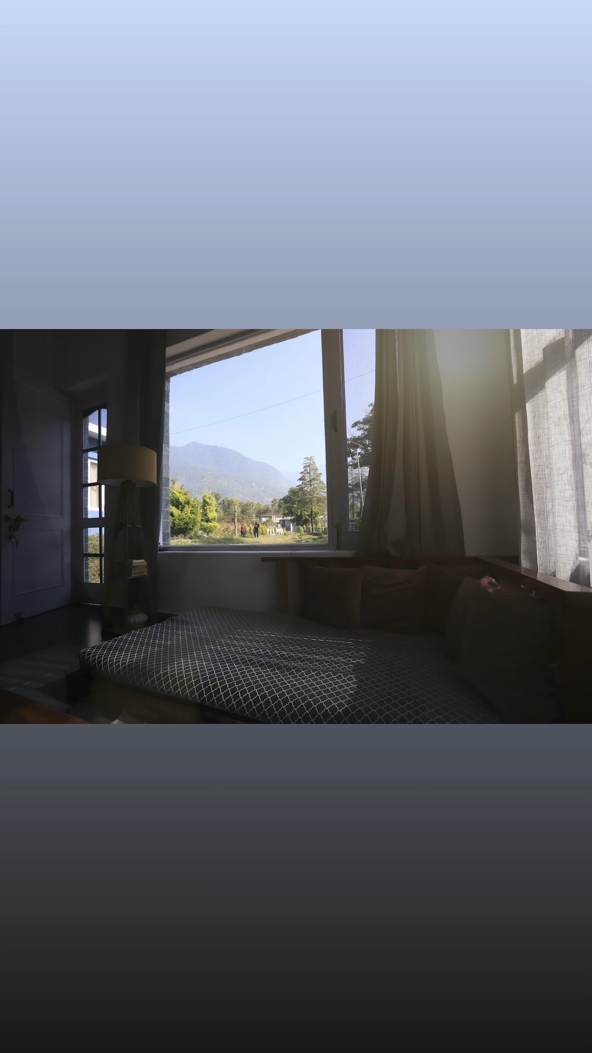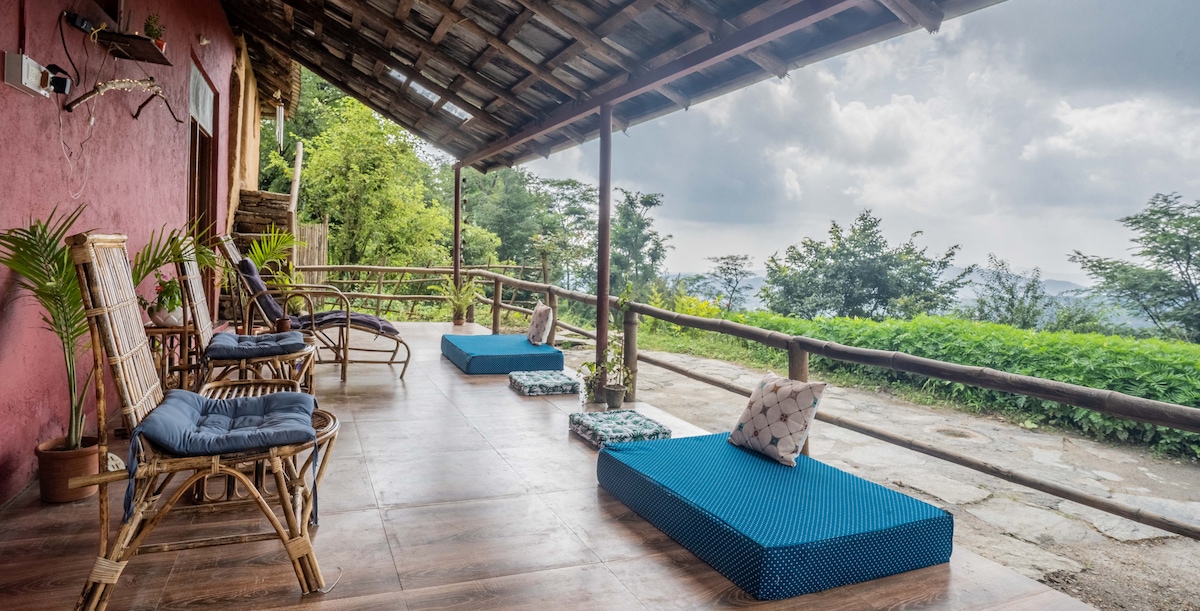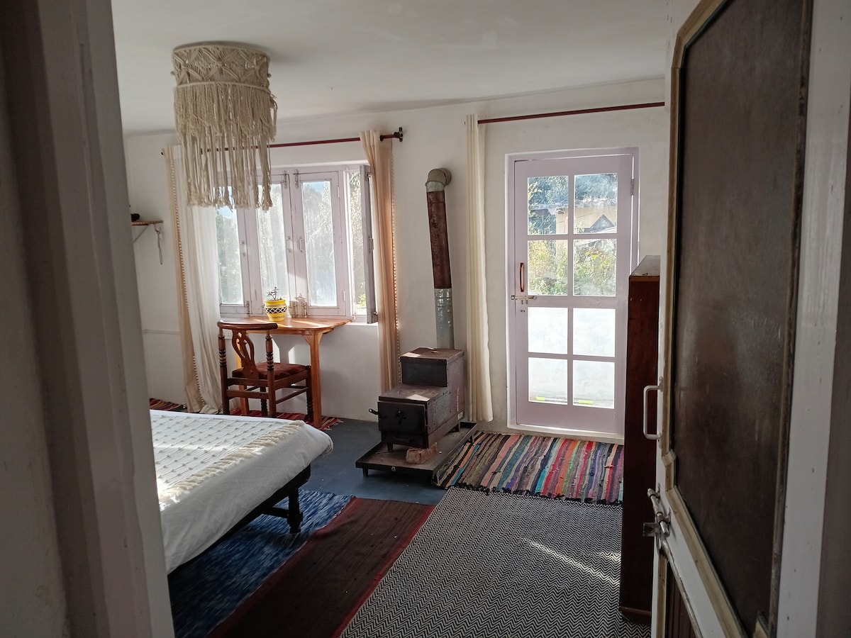 Step into another world! Chalet Vérité is a private cottage at Rendezvous, just 20 minutes down from Dharamshala. It's a perfect balance of open views and cozy comfort. Double story windows frame a stunning mountain range. The mezzanine bedroom looks out over a large sitting area. Set up your home office, snuggle up in the cute window seat, or join us at the dining hall for tea and a chat! We have 4 more rooms available at Rendezvous - let us know whatever you need!