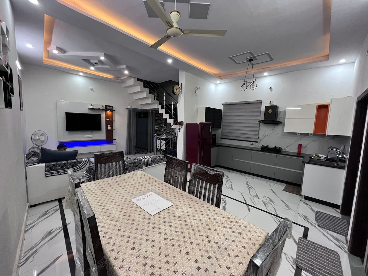 Newly built spacious house built with lots of love, Incredible work of interior design & lights! 🏠 Full Villa at ground floor for guests & free parking for own vehicle!🚗 Commutation: Auto Rickshaw(Tuk Tuk), Ola Available 🛺🚕 Fully functional KITCHEN with all the utensils & basics to cook with modern-day cutlery🍴perfect for friends & family! 👬 Proximity: Close-by Cafés, Restro, Dairy, Grocery stores Swiggy, Zomato for Food delivery & Blinkit for Groceries! Imp: We don’t allow Local IDs