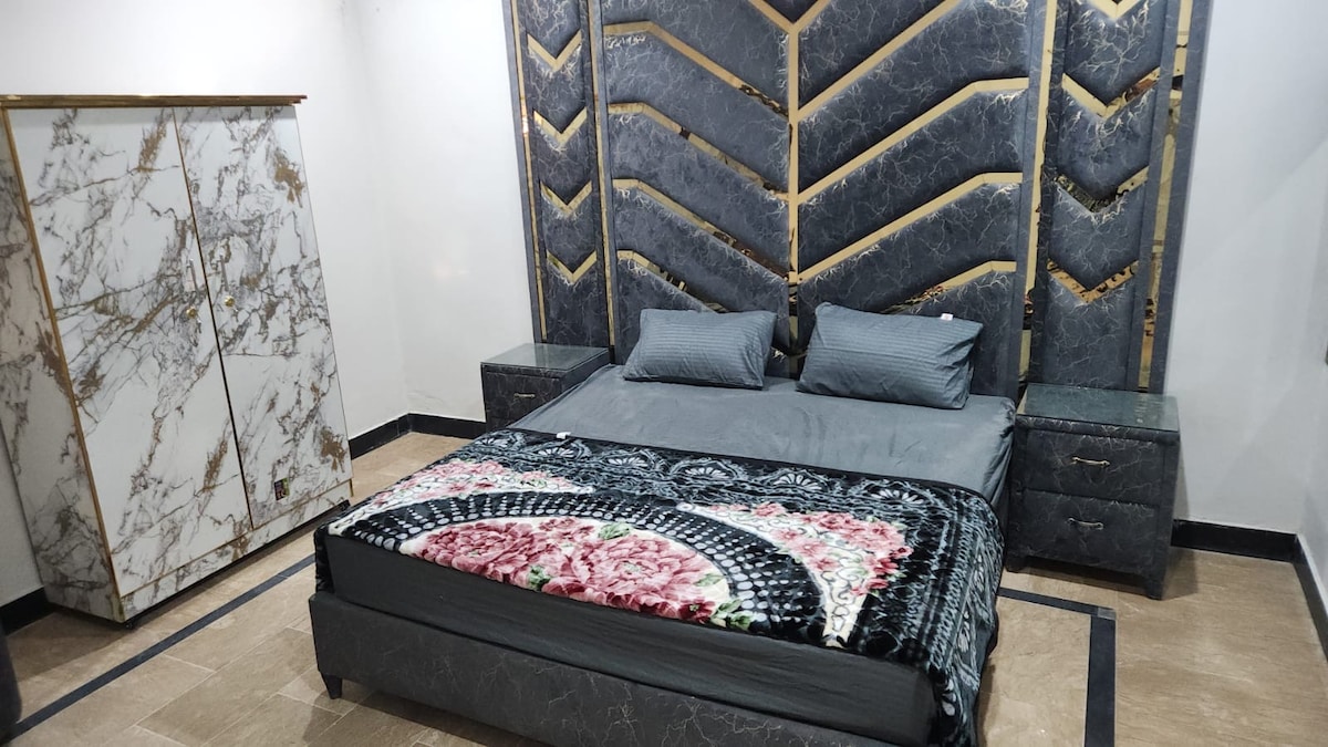 Welcome to our stylish two-bedroom suites in DHA 5 Islamabad. Enjoy the convenience of a quick commute and relax in a space featuring lovely decor and a fully-equipped home theater. Ideal for travelers seeking comfort and entertainment, this cozy retreat offers modern amenities in a prime location. It is a complete separate portion with it own separate entry and parking, family friendly, therefore very secure and peaceful. Parties & loud music is not allowed. Unmarried couples not allowed.