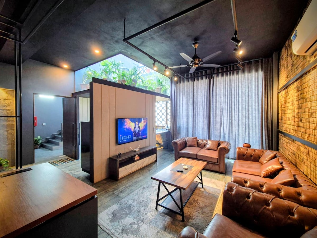 Modern, Luxurious and Aesthetic Penthouse stay in DHA Phase 2 Islamabad. Industrial Design with Patio Garden, Self Check-in, Smart TV-Netflix Included, Fast Wifi, Fully Equipped Kitchen (Stove, Microwave, Fridge, Kettle, Utensils & Cutlery), Stocked Bathroom & Spare Mattresses, Private Rooftop Garden with Sitting, Stunning Views. Prime Location near Parks, Malls, Restaurants, Cafes, Just 2 mins drive to Central Park, 5 mins to Giga Mall, 12 mins to Bahria Town (all phases) and 1 hr from Airport.