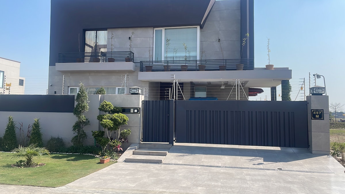 Welcome to our exquisite Airbnb located in the heart of serene and upscale community of Phase 5 DHA, offering a luxurious stay in a fully furnished modern unit.Bedroom with attached bathroom.Enjoy Spacious Lounge with Private Open to sky Bbq area,along with Open Kitchen and dining area.Parking on site. Discover convenience and scenic views at this stunning retreat. 3-min walk to Sector Park 7-min walk to Penta Square Mall and commercial area 15-min drive from Alama Iqbal International Airport