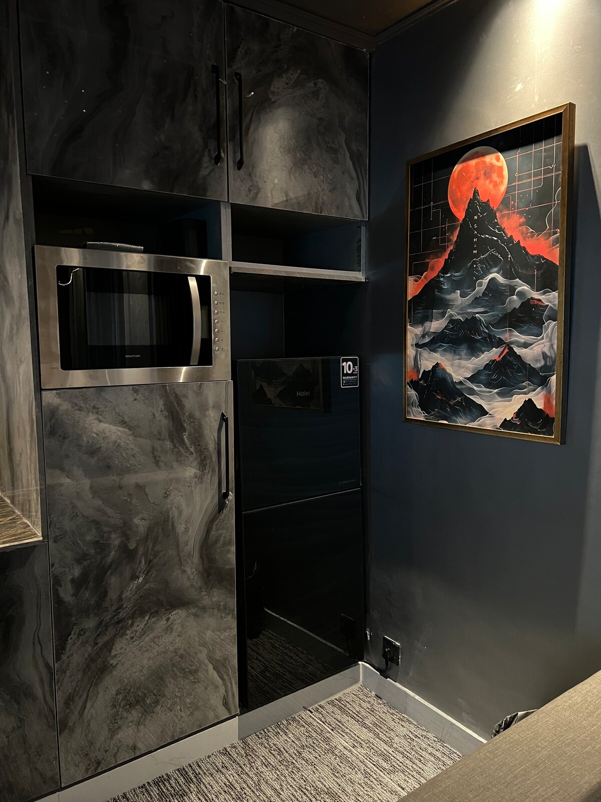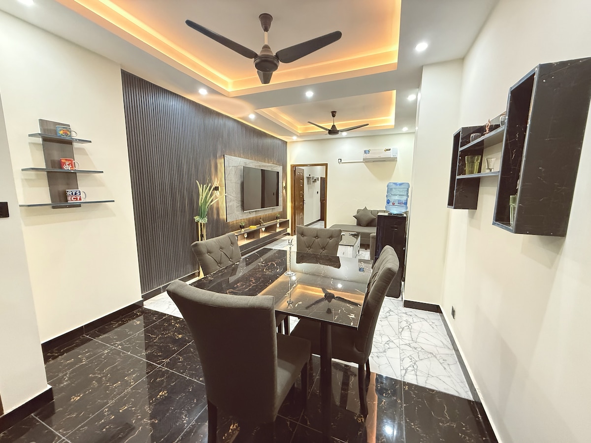 Experience modern, dark-toned elegance in the heart of F-11 Markaz, Islamabad. The Slate Suite is a refined one-bedroom apartment designed for guests who appreciate clean aesthetics, calm surroundings, and a prime central location. Ideal for professionals, couples, and solo travelers, this thoughtfully curated space offers the perfect balance between city convenience and private comfort.