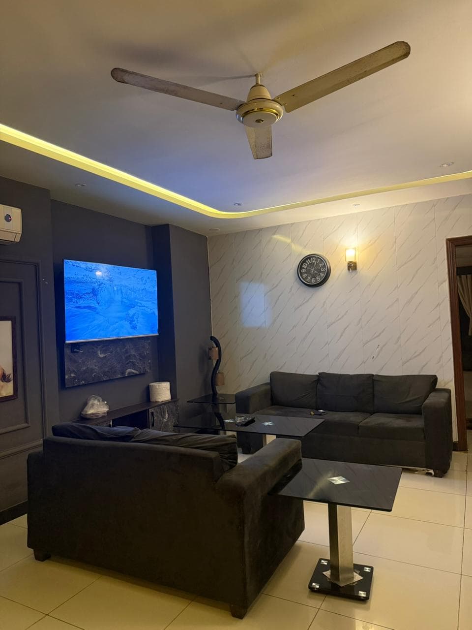 Discover our cozy one-bedroom apartment, perfectly located in the heart of Islamabad. Ideal for Families, couples, solo travelers, or business professionals, this stylish space offers comfort and convenience for your stay. ► Modern interiors: spacious bedroom, sleek kitchen, cozy living area. ► Building features Coffee Beans & Brim – dine-in or takeaway!. ► Amenities:High Speed Wi-fi, Free Parking, garden, 24/7 security. ► Family-friendly, centrally located – everything at your doorstep
