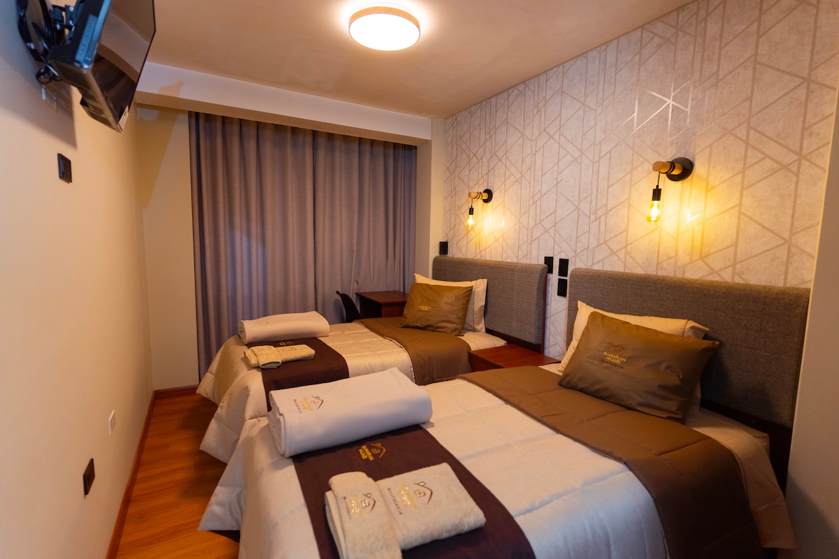 Exclusivo para un buen descanso individual, de pareja, familia o grupos, en nuestras camas que son muy confortables y en habitaciones amplias, además que estamos en el mismo corazón de la ciudad Puno, somos los únicos que tenemos habitaciones cuádruples, triples en este lugar.