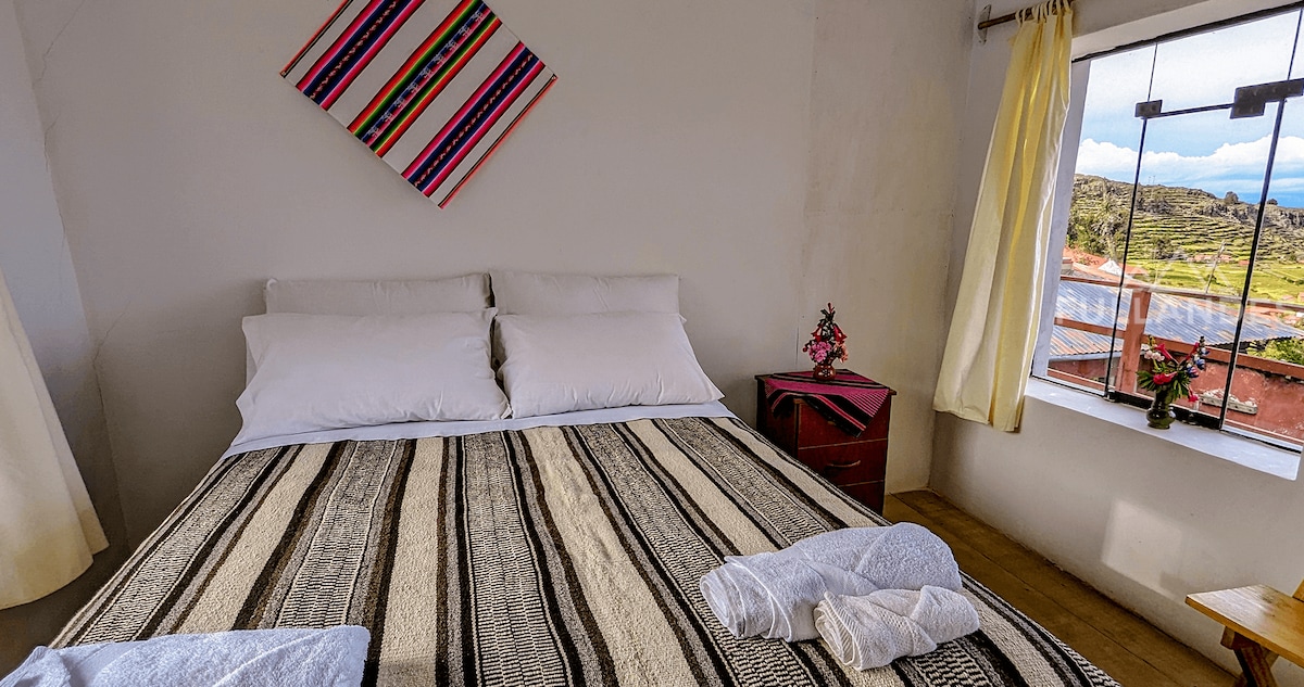 HABITACION con excelente vista panorámica al Lago Titikaka, para una estadía inolvidable, contamos con lugares de relajación y aventura para aislar del estrés y del bullicio de la ciudad además del aire libre, en la estadía contamos con vehículos y botes a motor para nuestro traslado hasta la isla flotante, además para la alimentación tendremos con productos alto andinos orgánicos, para completar la estadía tendremos city tour a toda la comunidad de lso uros y paseos en kayaks.