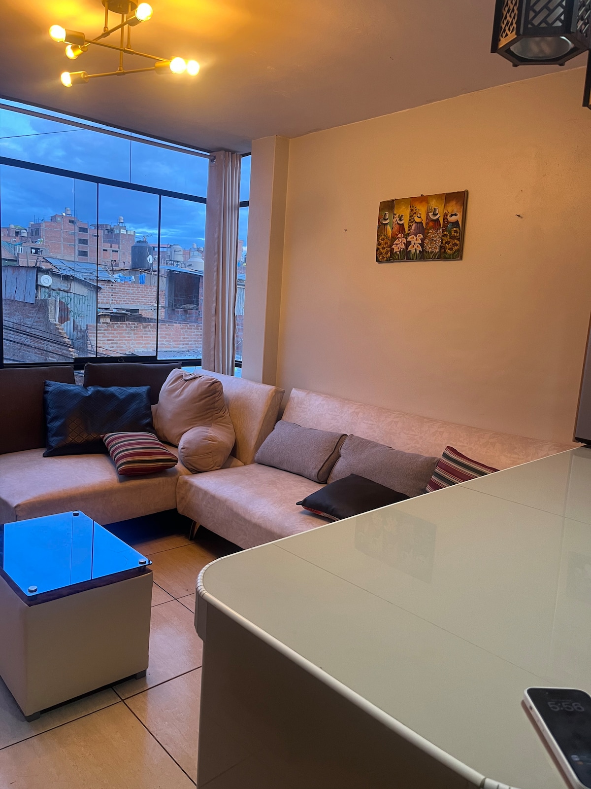 Mi departamento está situado en excelente ubicación con hermosa vista a la ciudad de Puno, para disfrutar y sentirse como en casa y en febrero la Candelaria, contamos con todas las comodidades de un departamento de estreno, ven, relájate en mi hermoso Puno. Contamos con ascensor directamente al departamento, dos cuartos amoblados para adultos y un cuarto para niñ@ o bebé con cuna y juguetes muy cómodo y acogedor para que tu pequeño esté feliz, tenemos ducha caliente las 24 horas del día.