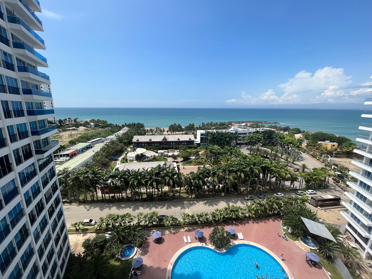 Hermosa suite, cuenta con cocina, sala, comedor 2 habitaciones con a/c, 2 baños, lavandería, con una increíble vista al mar agudizada por su excelente ubicación el en eldecimo tercer piso, al que se accede sin dificultad por medio de un ascensor. La torre cuenta con piscinas de adultos y niños, zona BBQ, gimnasio, parqueadero y seguridad las 24 horas, la suite cuenta con todas las comodidades y facilidades para pasar unas vacaciones de lujo, además de incluir el acceso y uso de la playa privada.