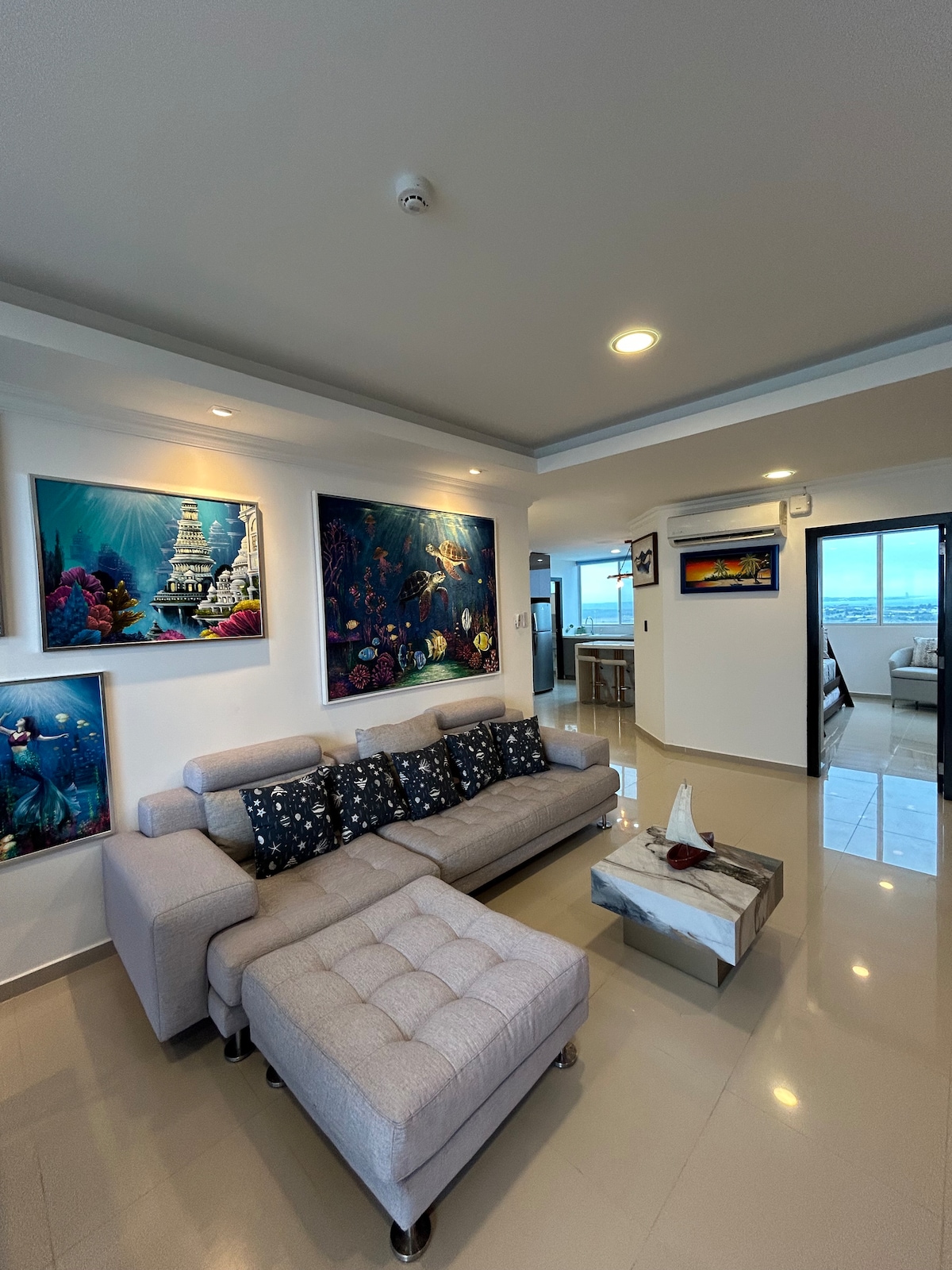 *Descubre la serenidad en Punta Centinela! Bienvenido a nuestra SEASKY SUNSHINEBNB SUITE, de dos ambientes, ideal para una escapada relajante. Este espacio acogedor y moderno cuenta con una litera perfecta para los más pequeños o amigos, y una cama redonda de tres plazas que te invita a descansar plácidamente y un sofá cama twint size . La cocina es pequeña pero está completamente equipada, lista para que prepares tus comidas favoritas.