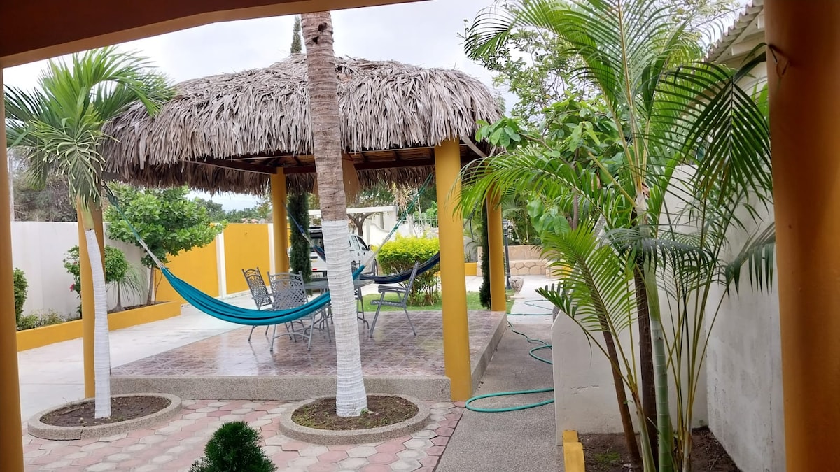 ¡Bienvenido a tu refugio en Punta Blanca! Disfruta de una casa de playa cómoda y segura, ubicada frente al Club Punta Centinela 2 habitaciones con aire acondicionado Capacidad para 8 personas 1 baño completo + 1 ducha exterior Sala, cocina equipada y Smart TV con wifi Glorieta con hamacas Amplio parqueo privado Seguridad 24/7 en la ciudadela 🌴 Rodeado de palmeras y jardines, este es el lugar ideal para descansar, relajarse y vivir la experiencia playera con familia o amigos.