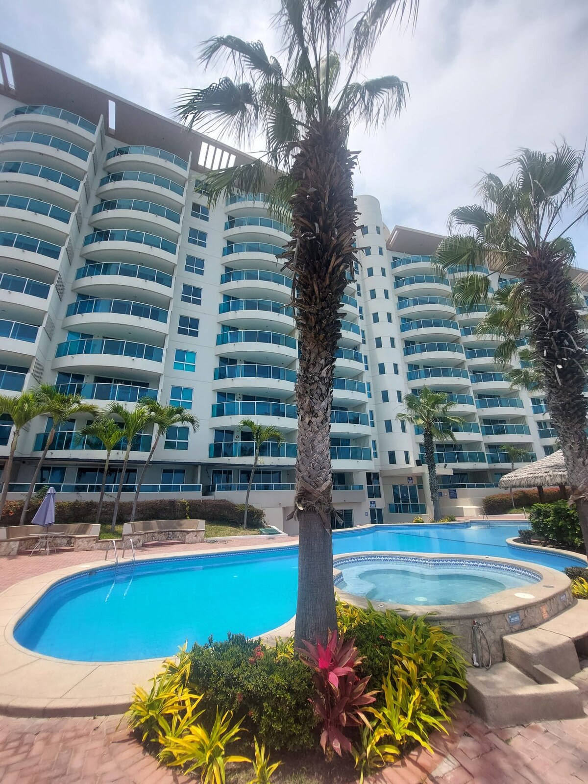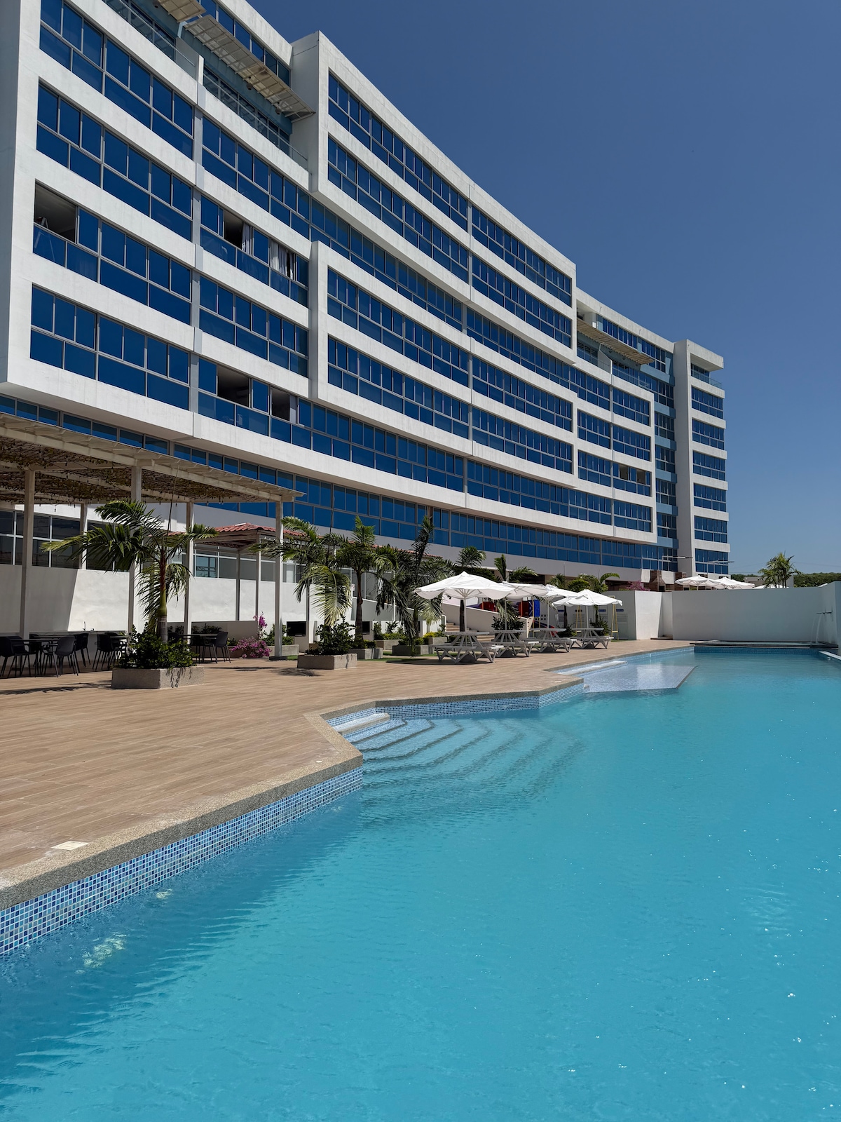 Elegante Suite detrás del Hotel Barceló, a 150 m del Mar, zona residencial, a 100 metros de prestigioso patio de comidas de Salinas, cuenta con una excelente vista y con áreas múltiples para poder disfrutar de un ambiente acogedor relajado y seguro. Cuenta con Piscina, jacuzzi, gimnasio y salón social.