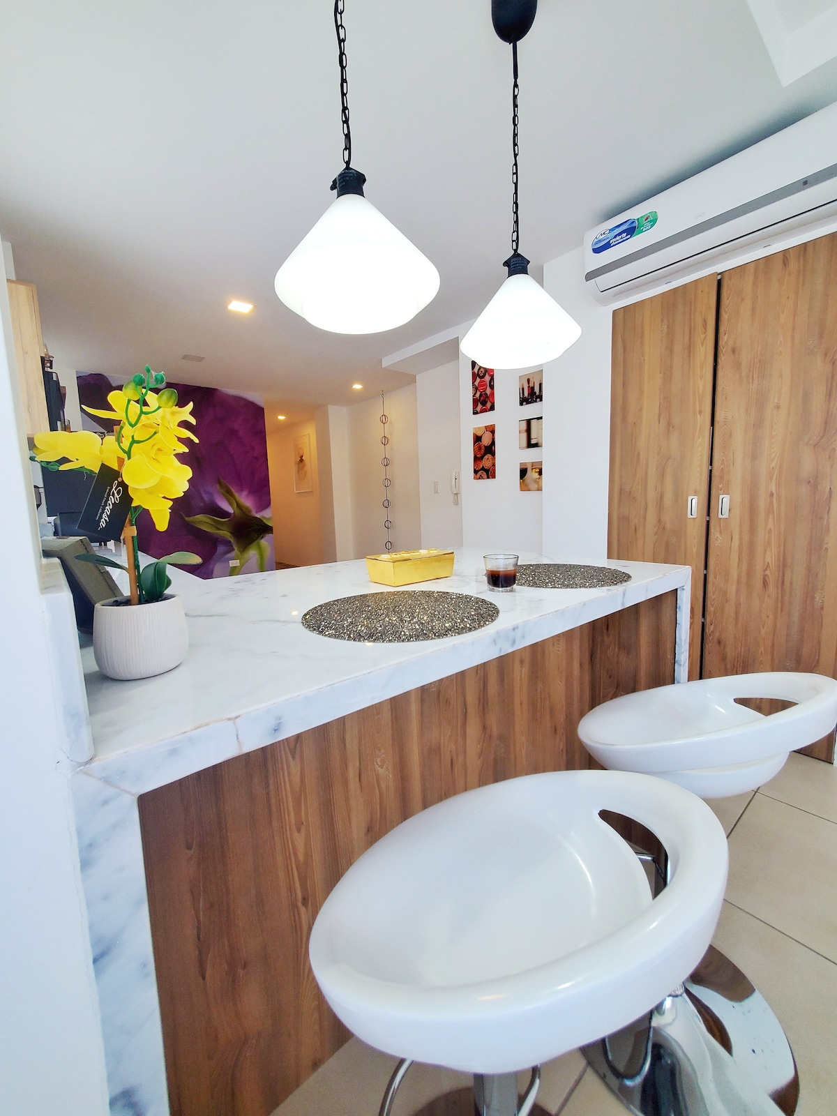 Este lugar único tiene su propio estilo, para disfrutar con familia y amigos, cuenta con acceso a las instalaciones de la Torre 3000 como gym, piscina, jacuzzi, asador, parqueo privado, 3 TVs, A/C en todo el departamento, 2 baños,cocina, horno,refrigeradora, cafetera, wifi, sala de juegos como billar, ajedrez, acceso de deliveries de comida, cuenta con absolutamente todo para pasarla increíble.