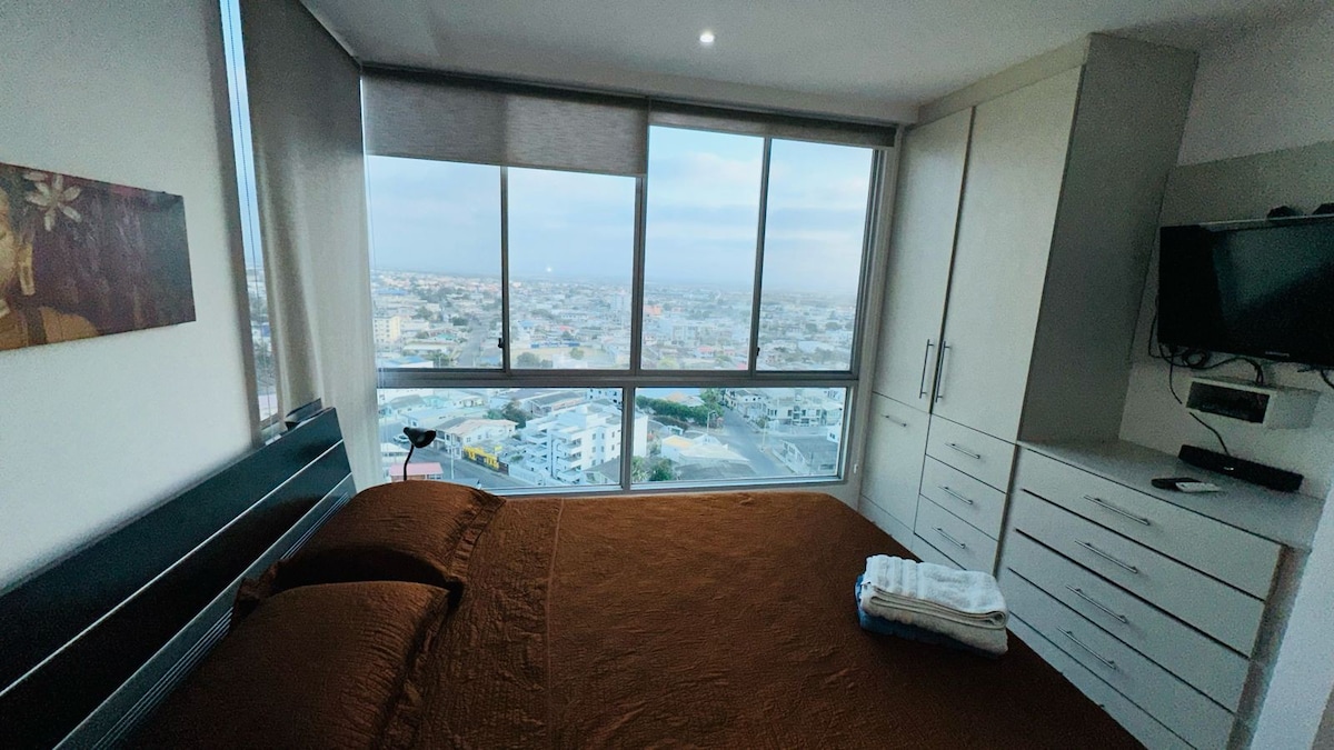 Has que tu estadía sea diferente y placentera, nuevo y elegante departamento frente al mar, con un ambiente moderno y una excelente ubicación. Disfruta de una espectacular vista en la terraza donde puedes aprovechar el jacuzzi, la piscina, el gimnasio o incluso finalizar el día con un mágico atardecer. Contamos con un parqueo privado y servicio de guardia durante toda tu estancia. Estamos totalmente predispuestos para solventar todas tus exigencias.