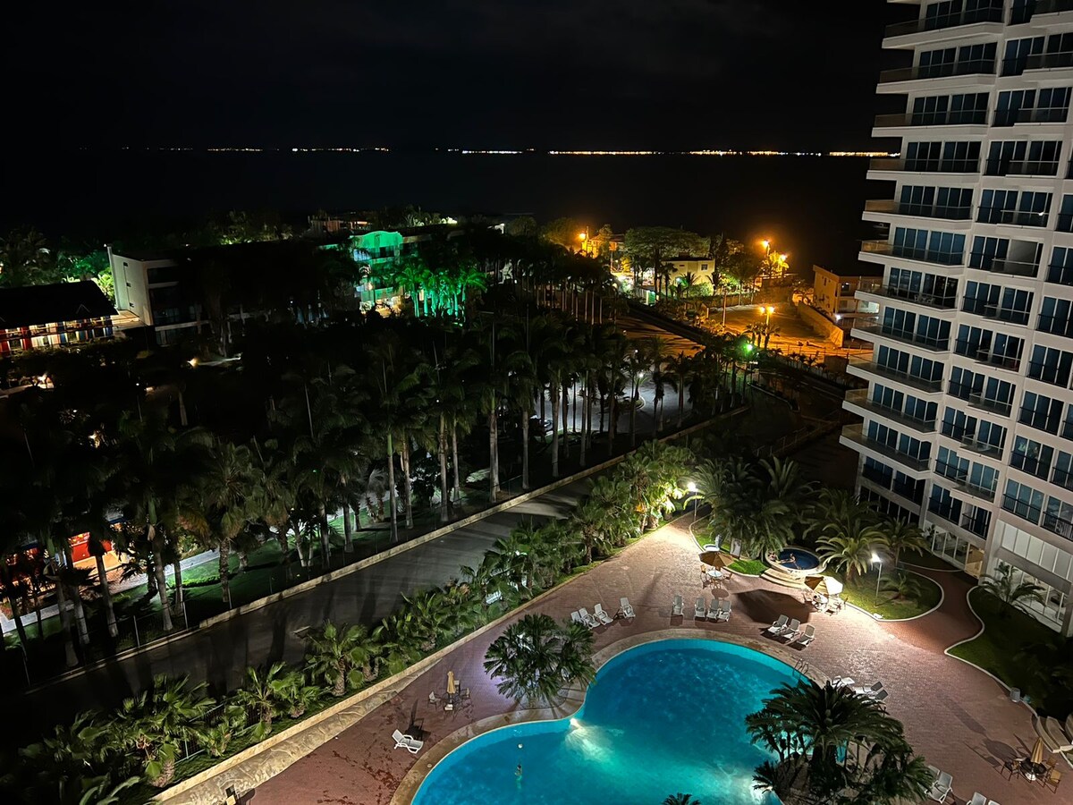 Comfortable apartment that can comfortably accommodate up to 7 people in its 3 bedrooms and 2 full bathrooms. Enjoy a comfortable balcony where you can watch the sunset and feel the refreshing sea breeze all day long. Afterwards, head down to the building's pool. Relax and have fun with your family, friends, or partner in this wonderful place to stay and enjoy a beautiful panoramic ocean view.