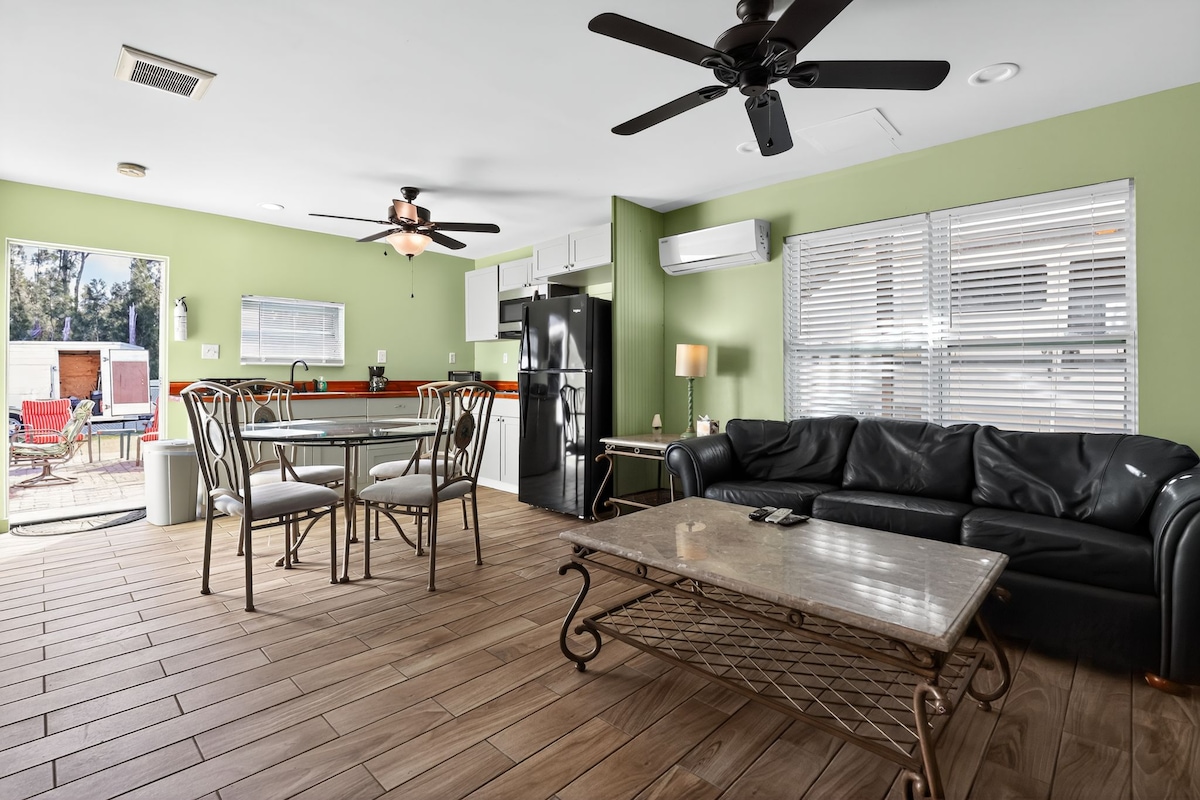 🛜500mbps+ WiFi 🏠Fully private + Private entrance 🌴Hammock Swings ☀️ Outdoor Patio 🦩Private Hot Tub 🥑Kitchenette w/ electric hot plate 😴King Size Bed Loft 📚Work Desk 📺 55 inch Smart TV + Roku ❄️ Cold A/C 🚘 1 parking space NOTE: Accessing the bed requires climbing a ladder. While sturdy and secure, it may not be suitable for guests with mobility limitations, so please consider this before booking.