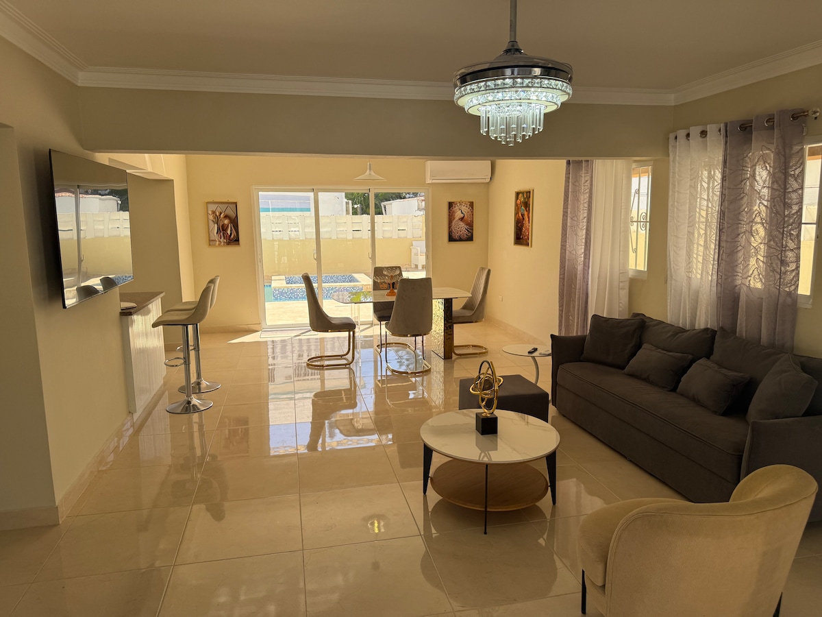 Relax with the whole family in this accommodation where tranquility is felt at all times, 2 minutes from the private beach, a pleasant villa with capacity for 8 people, with everything you need. Villa with 4 bedrooms, all with bathroom, in total 4.5 bathrooms, kitchen area and 3 terraces, private pool and close to the private beach, 15 minutes from Punta Cana Airport.
