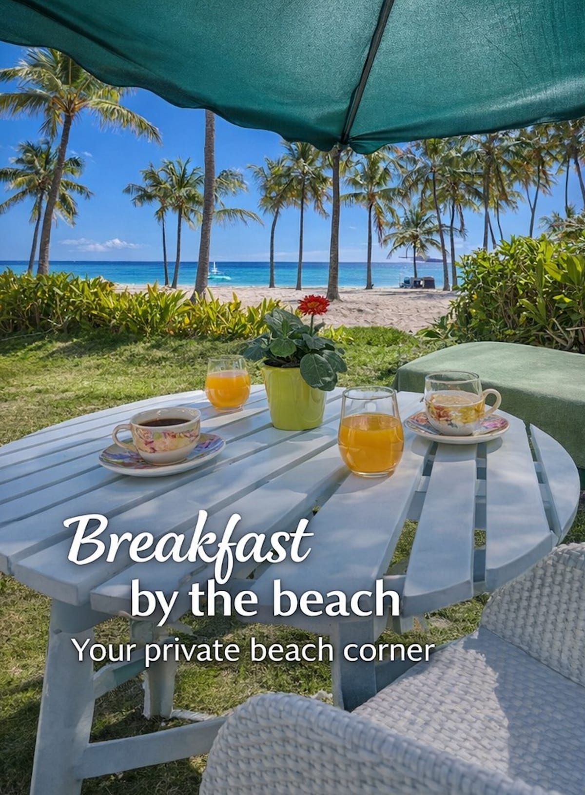 We have 3 bungalows, surrounded by palm trees and sand. Spend your days enjoying the private beach or relaxing in your terrace jacuzzi, mesmerized by the blue horizon. Luxury furnishings, quality. Private jacuzzi on your terrace. Free golf cart with driver. We personally deliver the house, explaining all its features. Welcome breakfast is included, with items stored in the cupboards and refrigerator for you to prepare as you wish. Starlink and mobile Wi-Fi, BBQ, beach games, lounge chairs