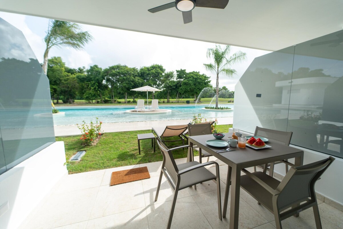 ¡Tu Hogar Lejos del Hogar! Comodidad y encanto en nuestro apartamento de una habitación ubicado a pasos del corazón de la acción en la exclusiva comunidad de Vista Cana. ¡Vista Cana! tal como reza su lema ¡UN MUNDO DE MOMENTOS! un paraíso tropical lleno de actividades y espacios para su disfrute, desde una cristalina playa artificial con agua salada, campo de golf iluminado, varias piscinas, lago para pesca, gimnasio completamente equipado, áreas para niños, scooters, kayak y restaurantes.