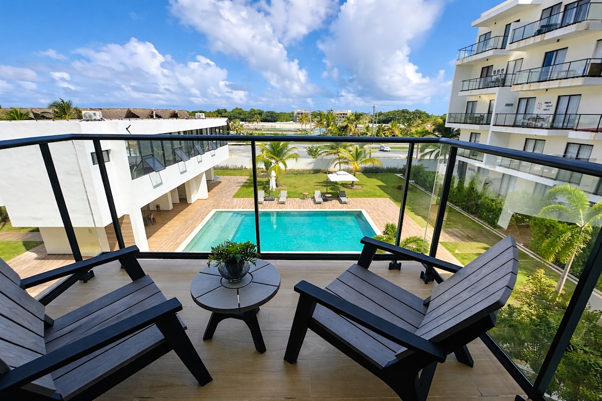 蓬塔卡纳市中心3楼1卧室泳池景观。