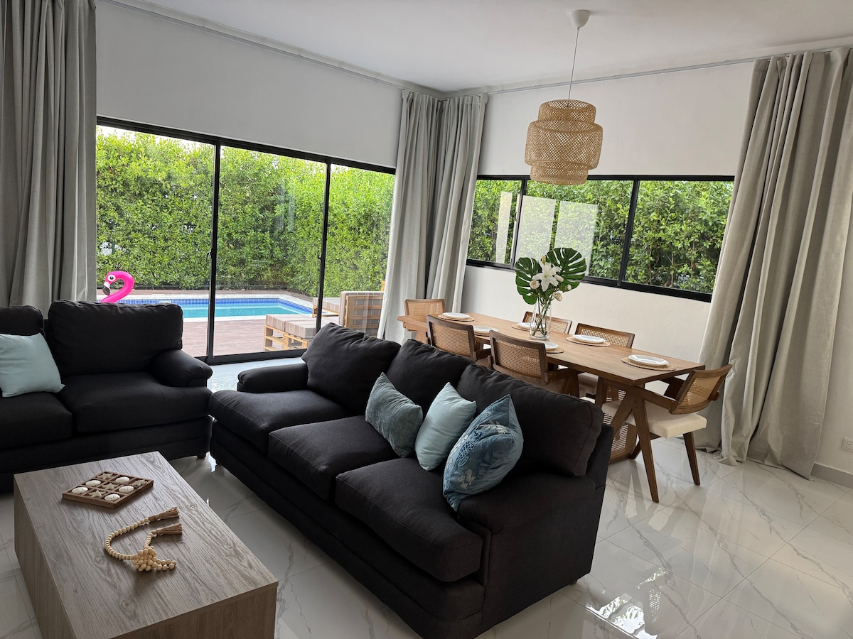 Disfruta de una estancia única en esta Villa espectacular, con un estilo elegante y acogedor, la estadía garantiza comodidad, privacidad, confort y buen gusto, ven a refrescarte en la piscina, Perfecto para familias o grupos de amigos, Ubicada en una zona estratégica, a minutos de la playa, cerca de todo lo que necesitas para unas vacaciones inolvidables. ¡Te encantará!