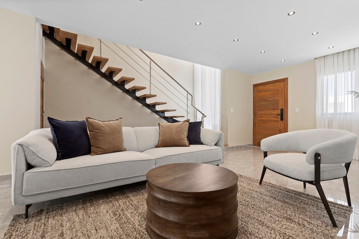 Enjoy a cozy stay in this 3-bedroom, 3-bathroom home in Downtown Punta Cana. Equipped with air conditioning, high-speed Wi-Fi, 2 Smart TVs, and a private terrace with a Picuzzi (no hot), it offers the perfect balance of comfort and convenience. The fully equipped kitchen, secure parking, 24/7 security, and large communal pool ensure a seamless experience. Just 3 minutes from Downtown Punta Cana and COCO BONGO, 12 minutes from the airport, and 15 minutes from the beach—book now!
