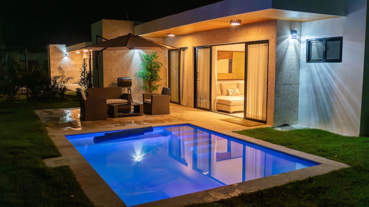 ¡Bienvenidos a tu refugio de lujo en Punta Cana! Esta villa para 6 personas, ubicada en un exclusivo residencial privado con vigilancia 24 horas, es ideal para una estancia inolvidable. Disfruta de un jacuzzi para 8 personas, mesa de billar y cocina totalmente equipada. A solo 12 min del Aeropuerto de Punta Cana, 10 min de centros comerciales, Coco Bongo, Blue Mall y Downtown Punta Cana, y 15-20 min de las mejores playas. Wi-Fi, aire acondicionado y estacionamiento privado incluidos.