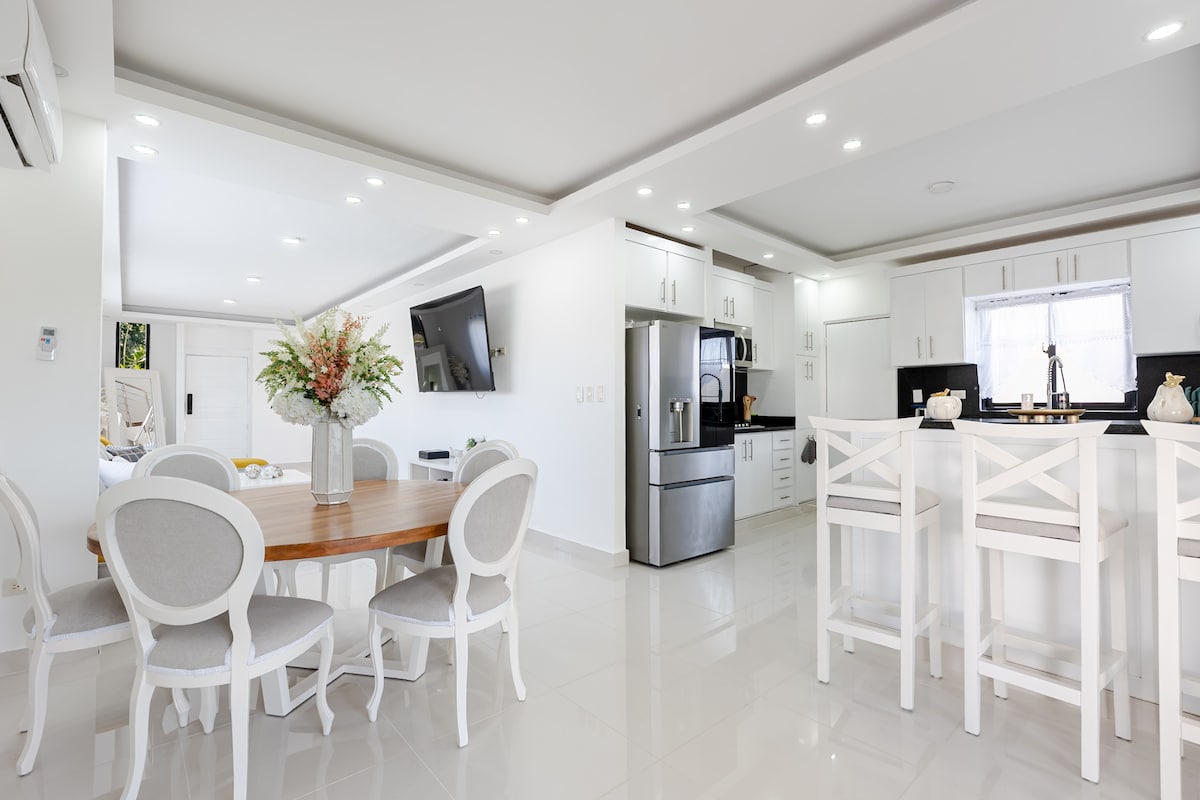 @VillasNurys de dos niveles en el corazón de Punta Cana. 5 min. de Coco Bongo, entre 10 y 15 min. a playas y aeropuerto. Este refugio tropical totalmente amueblado ofrece un escape exclusivo. Disfruta en una sola noche de un picuzzi privado, parrilladas, junte familiar y deliciosas gastronomias y actividades de Punta Cana. El interior cuenta con una decoración de inspiración caribeña y amplios espacios: Dos habitaciones y un sofá cama adicional brindan toda una posibilidad. ¡Como en casa!
