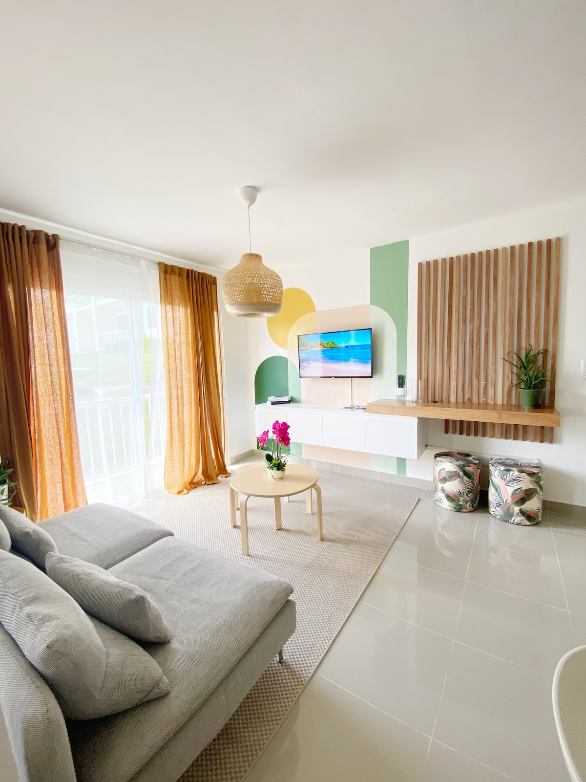 On the second floor, this newly renovated apartment, fully furnished features , a spacious, cozy and bright living room with an open brand new kitchen, 65 in. TV with Netflix/Cable and a balcony. The apartment comfortably accomodates 2 people. Just 1 mn walking to restaurants, bars, banks, salon, ice cream stores, pharmacy and Punta Cana local beer distillery. Just 3mn driving to Airport, Supermarket and Blue Mall and 7mn from Playa Blanca Beach, Westin Hotel, Punta Cana 3 Golfs courses.