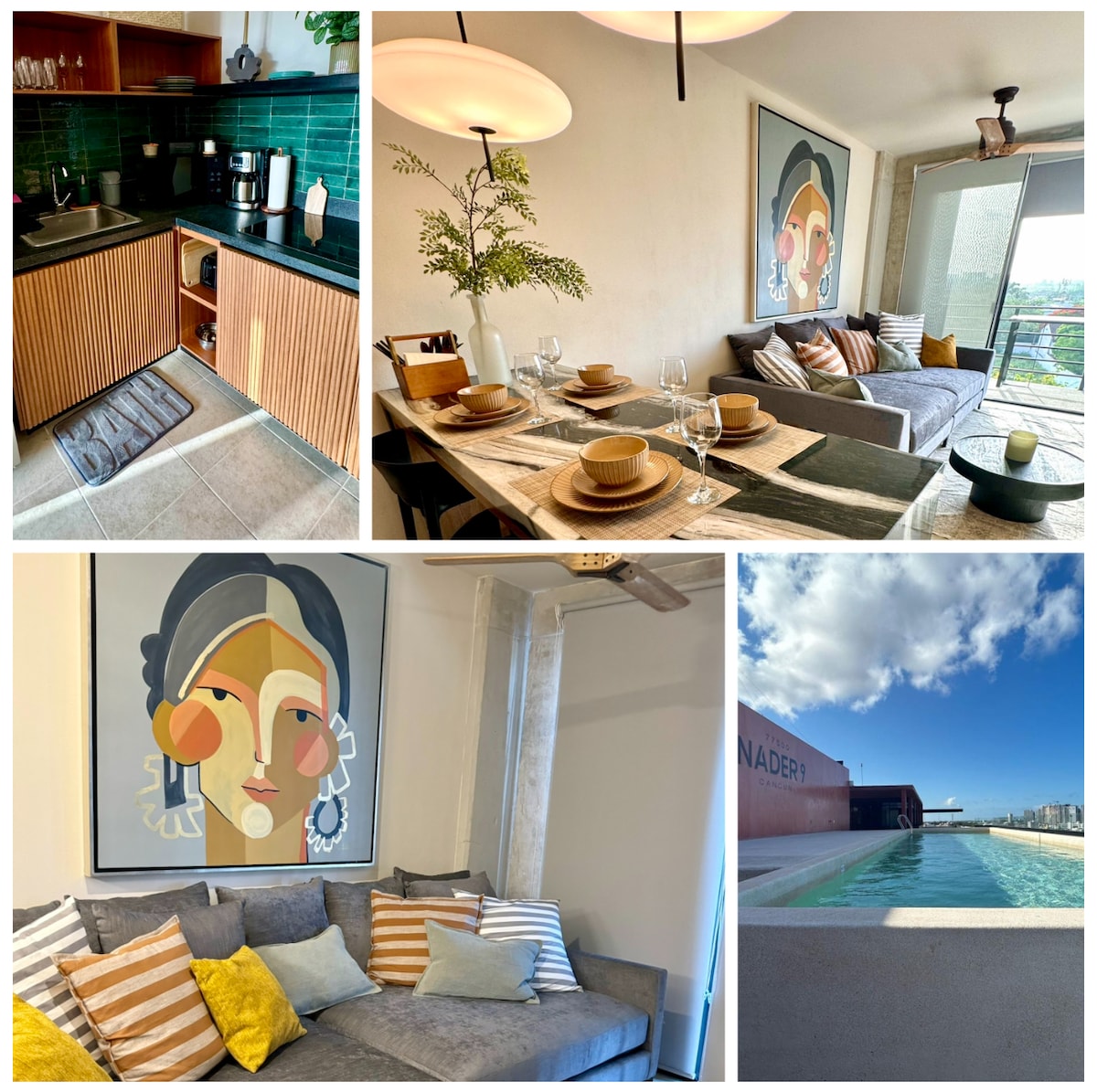 🌟 "If I could rate it 6 stars I would!" -Guest 900 sq ft loft-style Beach Penthouse in the best location in Cancun! 👉 2 rooms with 3 beds (king, queen, sofa-full), 👉 2 private balconies (no neighbors at top balcony) 👉 2 full bathrooms 👉 Fully stalked kitchen 👉 Smart TV, Netflix, WIFI (not fast) 👉 Cleaning service is included every other day 👉 Beach towels provided at the lobby 👉 1-min walk to restaurants and nightlife!!! That means you'll be able to hear it :)