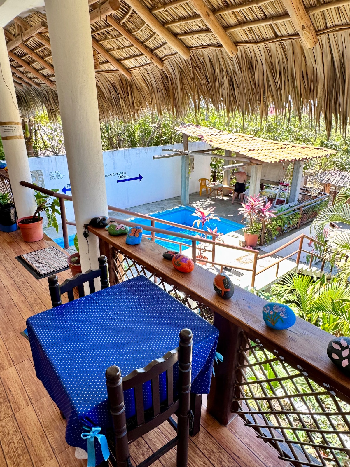 Disfruta tu estancia en Zipolite con las comodidades que te mereces. nos ubicamos a 200 mts de la playa y sbre la carretera principal de Zipolite con facil acceso. Contamos con cocina privada y equipada para que puedas cocinar si asi lo deseas. las recamaras cuentan con aire acondicionado y la alberca es compartida. las mascotas son bienvenidas a la propiedad "Descuento activado por posible ruido (por obras de terreno cercano)solamente durante el día"