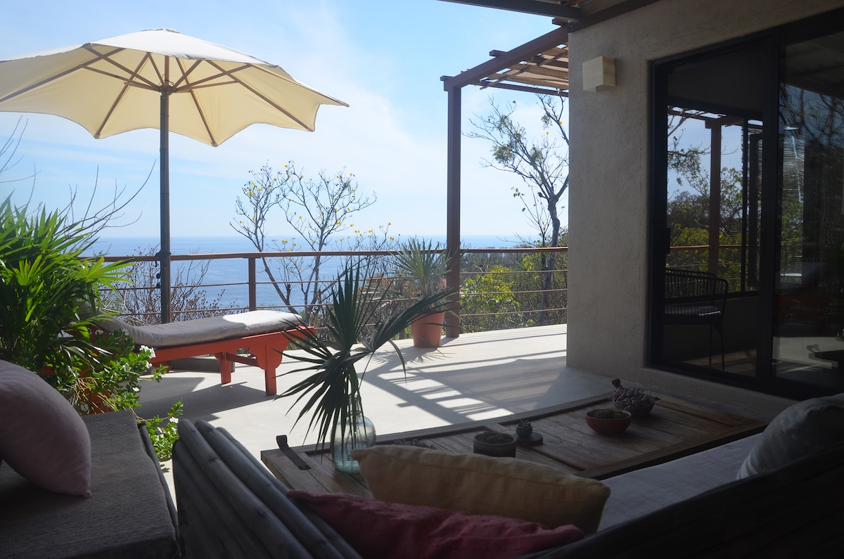 This cliff side Villa is located in a private and secure community. The community has an infinity pool with a palapa for shade. Enjoy endless Pacific Ocean views from any of the houses 3 verandas. The Villa is fully equipped with everything you need for a relaxing stay. A car is highly recommended, however there are 2 amazing beaches within a 15 minutes walk.