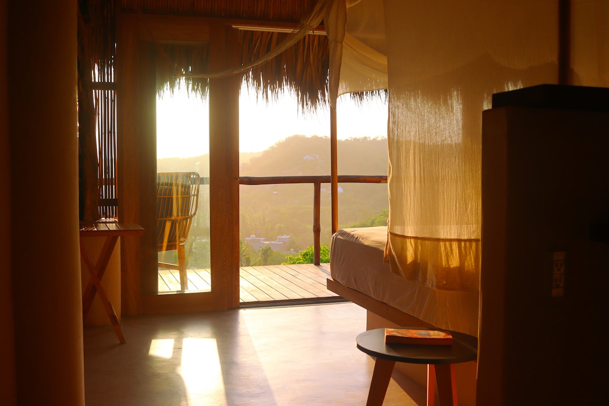 Facing the ocean and surrounded by the trees of Mermejita Mountain, Pargo Studio is one of two independent studios in our house: La Extraviada. It's located only five walking minutes away from the calm and majestic Mermejita beach and 15 minutes away from Mazunte's downtown, with its laid-back atmosphere and tasty restaurants.