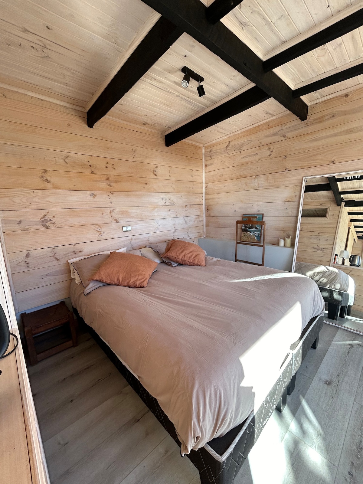 Son dos apartamentos tipo Tiny house de 36 metros cuadrados, con vista al mar. A pocos minutos caminando a la playa. Ideal para parejas y amigos. Cercania con minimarket, restaurantes, cafeterias. Tiene una cama matrimonial mas un sofá cama. Incluye ropa de cama, jabon, papel higenico, estacionamiento para un automovil. La cocina esta equipada con horno, parrilla a carbon, calefacción eléctrica y todo lo necesario para que tu estadía sea inolvidable. ! te esperamos ¡
