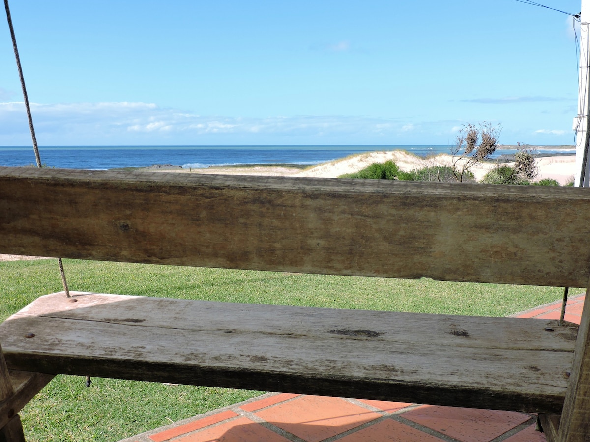 Espaciosa y cómoda casa FRENTE AL MAR, lista para el invierno, a 1 cuadra y media de la playa, VISTA al mar desde sus dos pisos, a dos cuadras del supermercado y del CENTRO. Aire frío/calor en la habitación de arriba y ESTUFA a leña en la sala principal. Ventiador. Contamos con vista al mar así como también diversos JUEGOS de mesa para pasar días de invierno en familia frente a la estufa. Ducha fuerte y calentita. 1 cama doble, 2 camas individuales, 1 sofá cama. Se recuerda traer ropa blanca.
