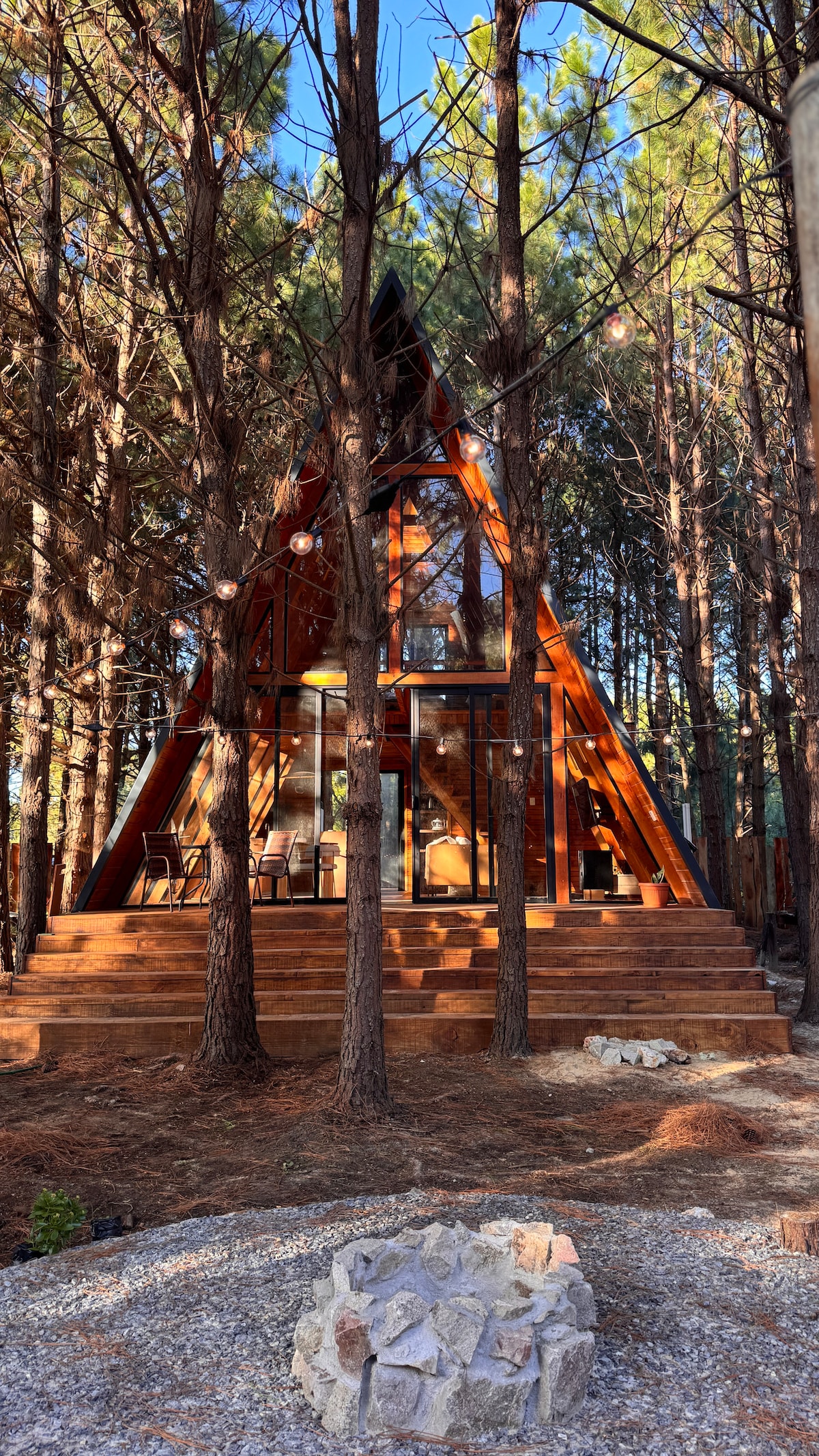 Our A-Frame style cabin was created with a special purpose: to be a cozy refuge in the middle of the forest, where the most beautiful memories can be born. Between wild nature and a paradisiacal beach, the wood-and-glass cabin inspires calm, reverence, and connection. Your peaceful retreat, your home away from home — a place to live unique moments that will stay with you forever. Enjoy every instant: the surrounding nature, the cabin’s details, and the silence that heals.