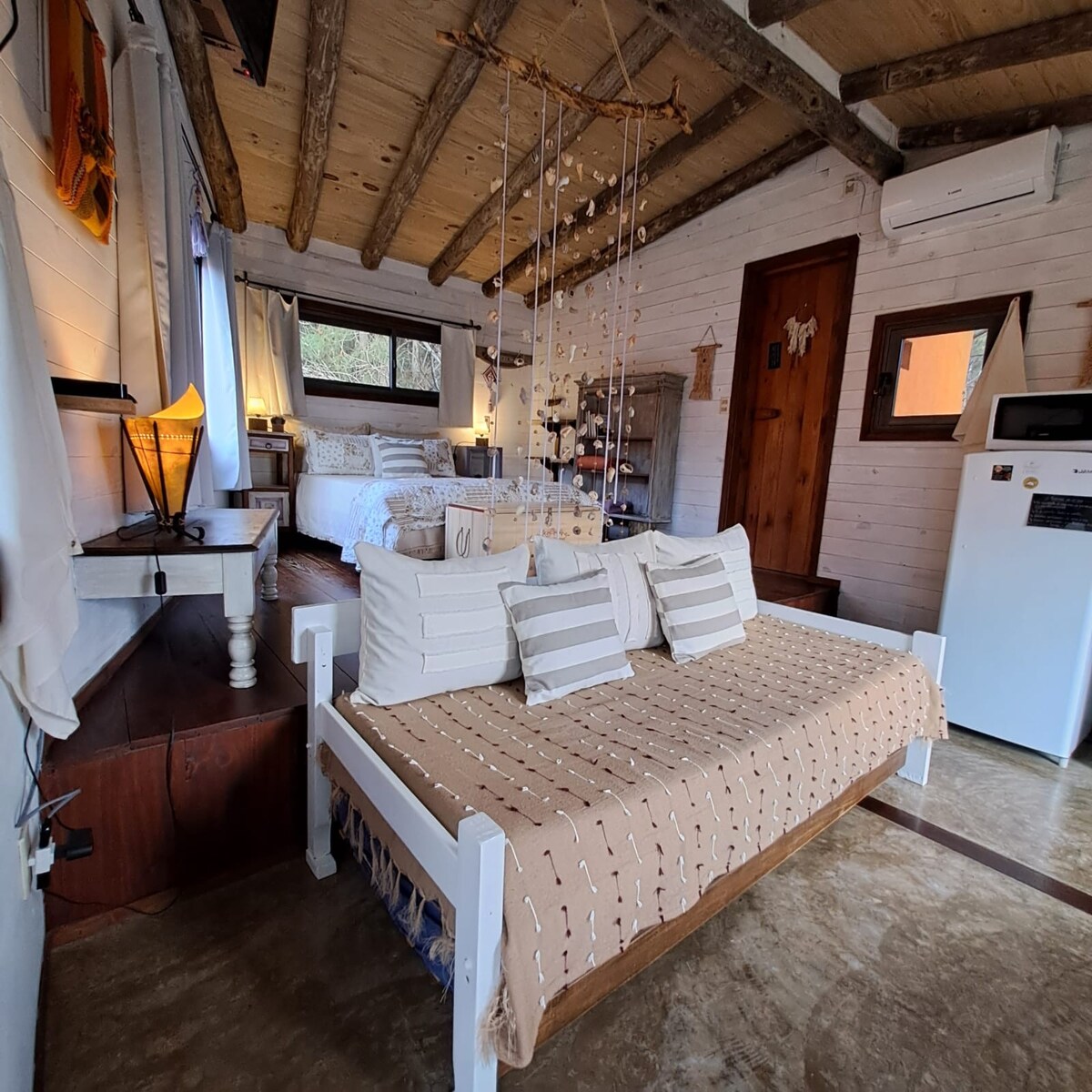 Our house has 3 comfortable rental rooms for 2 and 3 people with bathrooms and private decks. The rooms are completely independent from the main house and do not connect to each other. Breakfast and Yoga classes are included. The living room, kitchen, main deck of the house, and terrace are common areas. We are located 300 meters from the most beautiful beach in Punta del Diablo, in the privacy of the forest road to Playa Grande and the nature reserve Parque Santa Teresa.